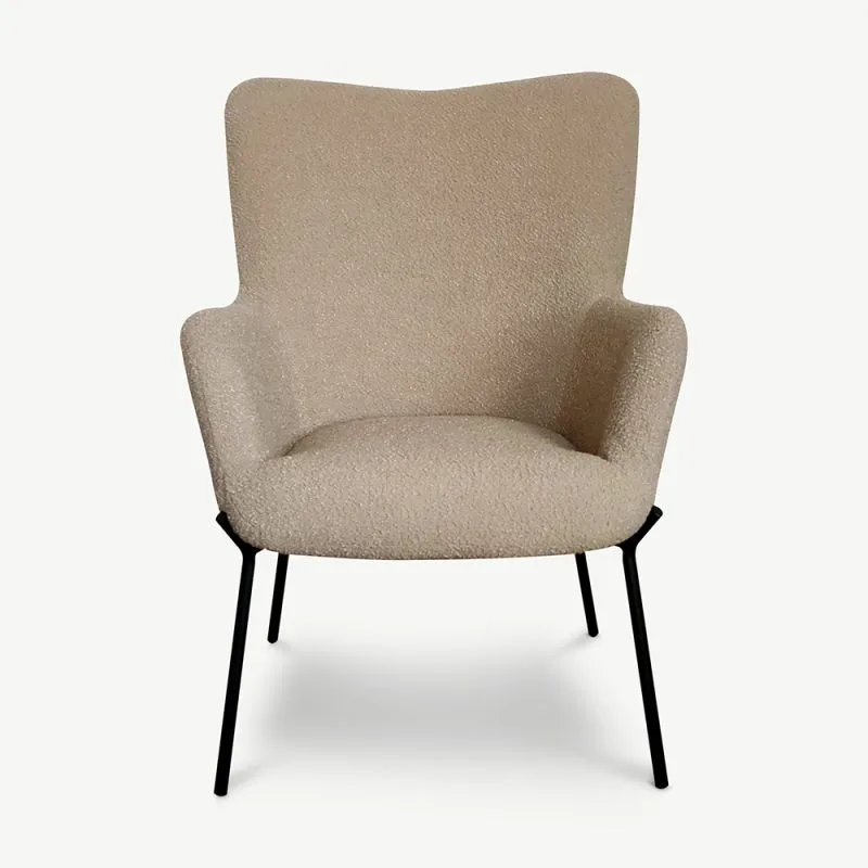 Tumedat beeži bouclé kangast Dublini tugitool on ideaalne kombinatsioon mahedast tekstuurist ja kaasaegsest elegantsist, mis on loodud muutma teie eluruumi oma rafineeritud võlu ja erakordse mugavusega.