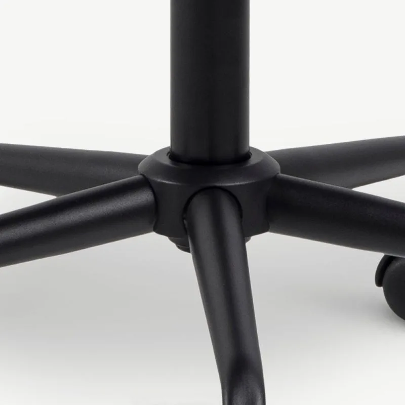 Tooli stabiilsust tagab vastupidav metallist viieharuline alus, mis on kaetud stiilse musta pulbervärviga. Lisaks on tool varustatud piduritega ratastega, mis takistavad tooli liikumist, kui see ei ole kasutusel, kuid võimaldavad sujuvat liikumist istumisel. See funktsioon suurendab ohutust ja praktilisust igapäevases kasutuses.