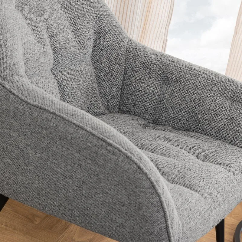 Tooli peenelt viimistletud hall kangaskate loob pehme ja meeldiva istumiskogemuse. Istumissügavus 50 cm ja laius 52 cm tagavad piisava ruumi lõõgastumiseks, samas kui 44 cm kõrgune istepind toetab keha ergonoomiliselt. Käetoed, mille kõrgus on 61 cm, lisavad lisamugavust ning muudavad istumise veelgi nauditavamaks.