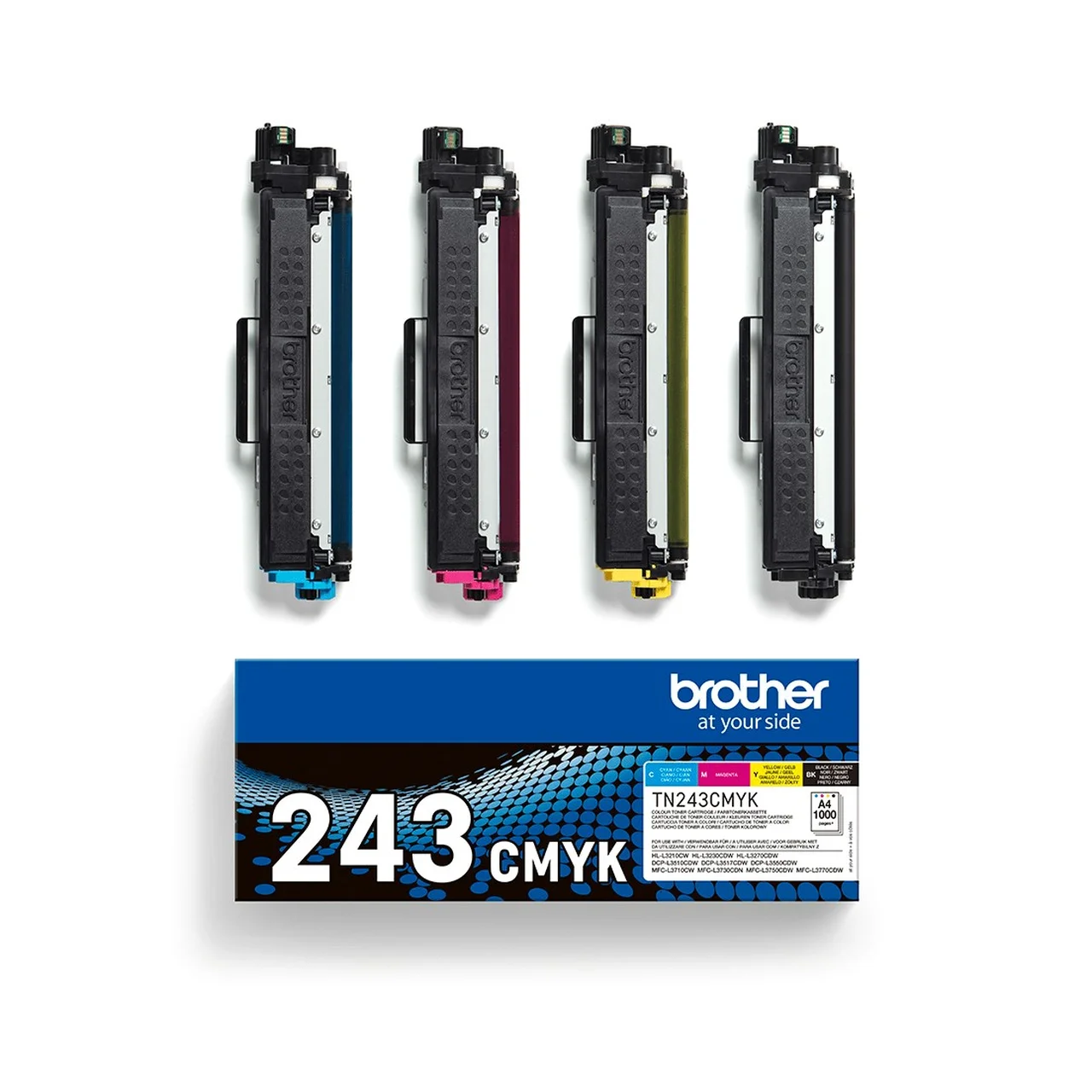 Brother TN-243CMYK originaaltoonerite komplekt 1000 lk must/tsüaan/magenta/kollane laserprinterile DCP-L3510CDW/L3550CDW/HL-L3210CW/L3230CDW/L3270CDW/MFC-L3710CW/L3730CDN/L3750CDW/L3770CDW