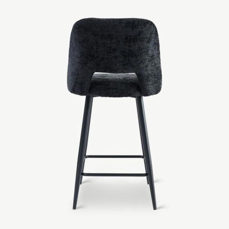 Caio baaritool ühendab minimalistliku elegantsi ja praktilisuse. Antratsiitkangas katab pehmendatud istme ja seljatoe, pakkudes luksuslikku tunnetust ning vastupidavust igapäevaseks kasutuseks. Tooli metallist raam tagab tugeva konstruktsiooni ja stabiilsuse.
