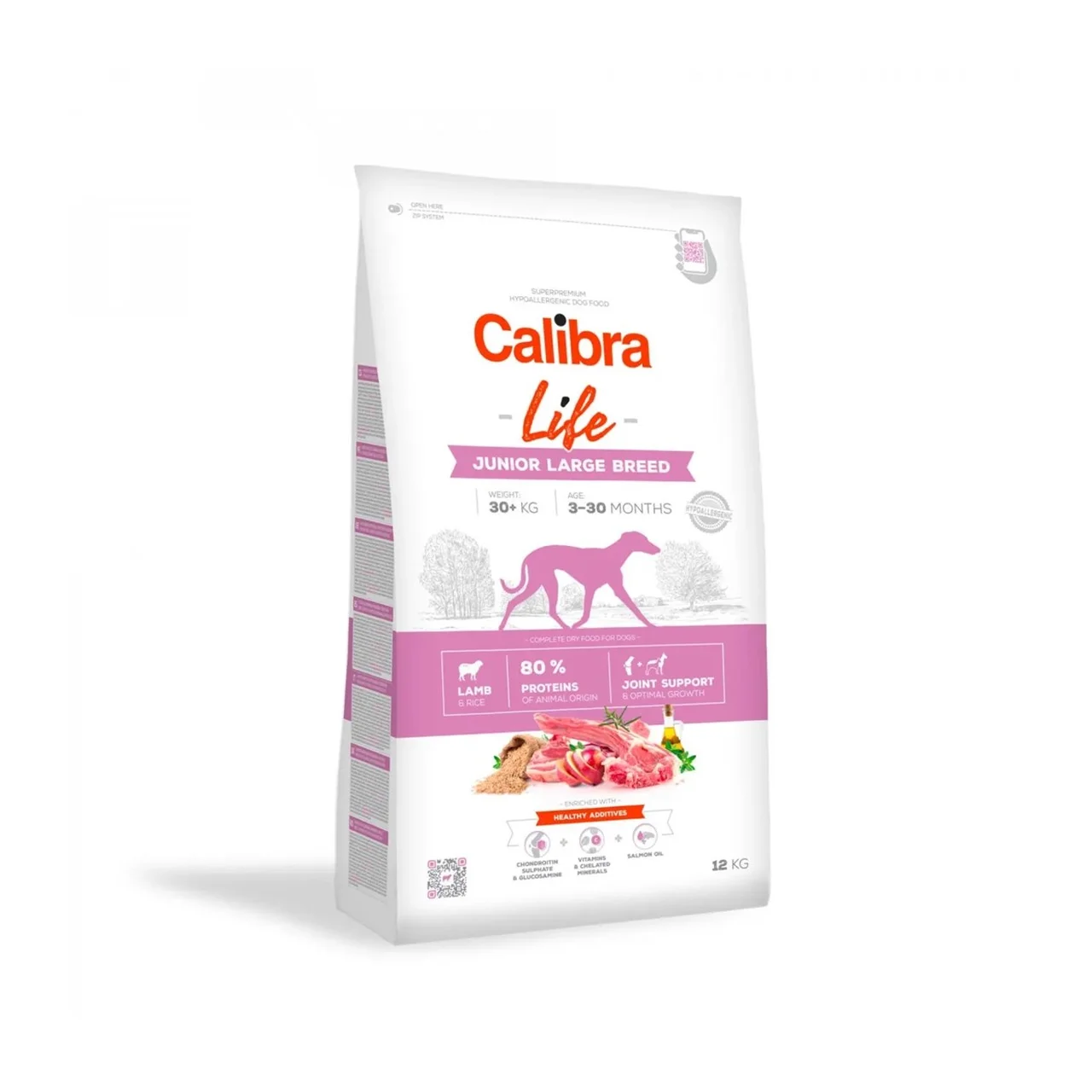 Calibra Life Junior Large Breed Lamb on täisväärtuslik ja gluteenivaba kuivtoit, mis on spetsiaalselt loodud suurte tõugude noortele koertele (3–30 kuu vanuses, täiskasvanud kehakaaluga 25–45 kg). Toit põhineb kvaliteetsel lambalihal ning toetab kasvuperioodil kutsika seedimist, liigeste arengut ja üldist heaolu. Toode sobib kõigile tundliku seedimise või allergiaohuga koertele, sest koostises puuduvad gluteen, soja ja kunstlikud värvained.