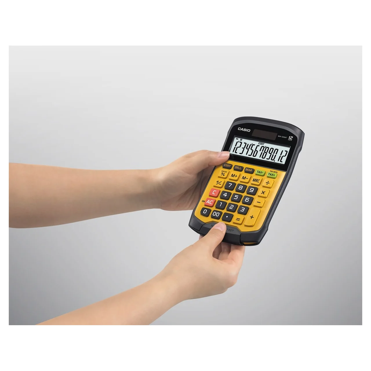 Casio WM-320MT-S 12-kohaline IP54 veekindel taskukalkulaator, must/kollane, eemaldatav klaviatuur, päikese- ja patareitoitega (109x169x33 mm)
