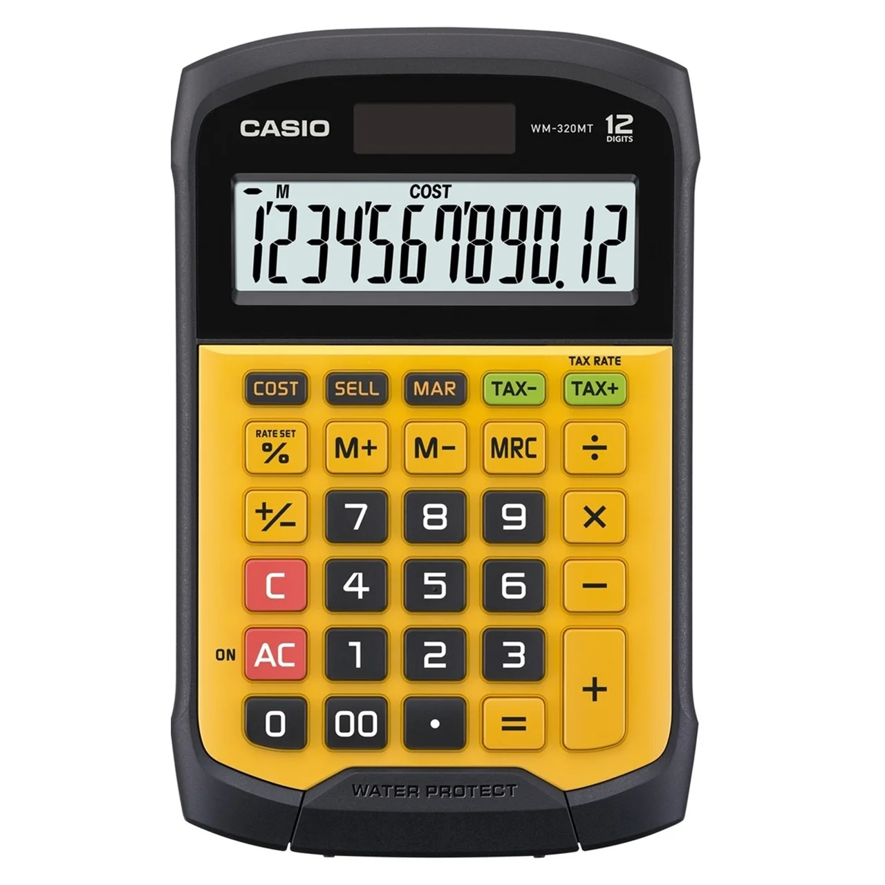 Casio WM-320MT-S on pestava klaviatuuriga, IP54 veekindluse ja 12-kohalise LCD-ekraaniga taskukalkulaator, sobib hästi niisketesse ja tolmustesse oludesse.