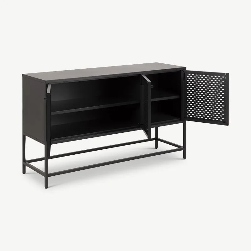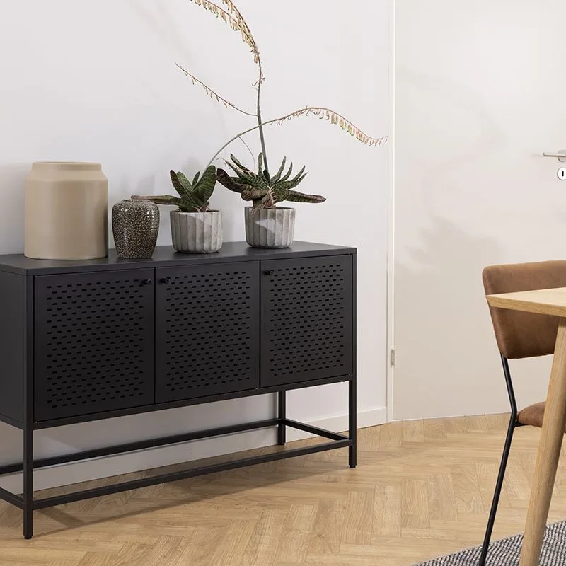 Chester must metallkummut ühendab endas industriaalstiili jõulise disaini ja praktilise hoiustamisvõimaluse. Selle mati musta karestatud pulbervärvitud metallviimistluse ning metallsõrestikust uste kooslus loob pilkupüüdva mööblieseme, mis sobib nii kaasaegsetesse kui ka rustikaalsetesse interjööridesse.