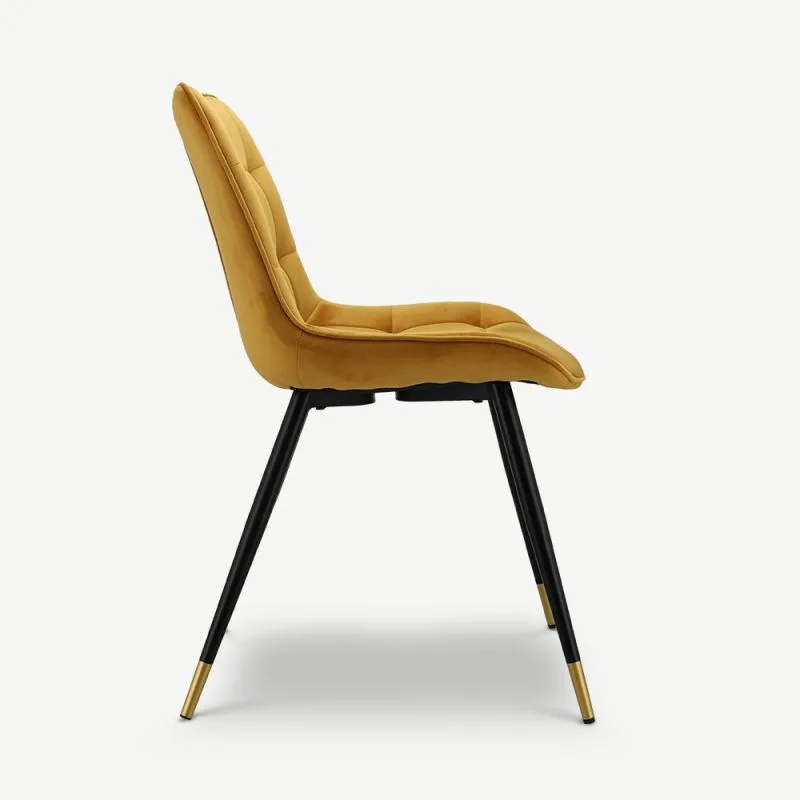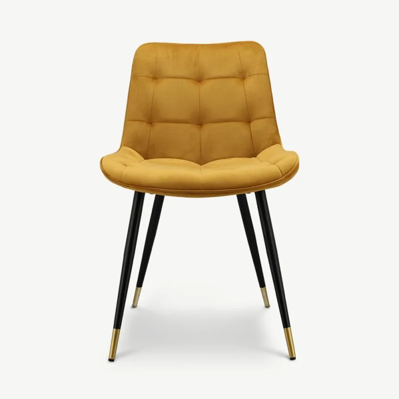 Lisa oma söögituppa stiili ja mugavust Chloé kollase tepitud sametist söögitooliga. See tool ühendab pehme ja luksusliku sametpolstri vastupidavate mustade metalljalgadega, luues elegantse ja ajatu mööblieseme, mis täiendab iga interjööri. Tänu oma hoolikalt läbimõeldud disainile on see ideaalne valik nii söögilaua äärde kui ka ooteruumi.