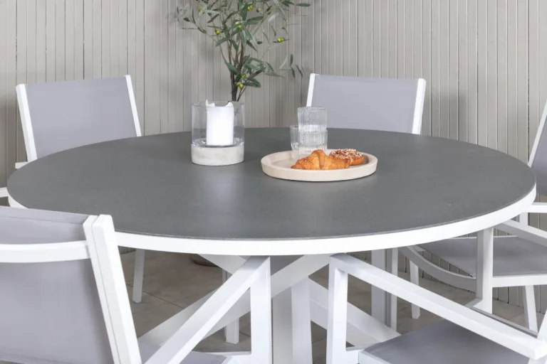 Copacabana ümmargune aiamööbli komplekt on ideaalne lahendus, kui soovite tuua terrassile, aeda või rõdule kaasaegset ja elegantset meeleolu. Komplektis on avar, 140 cm läbimõõduga ümmargune laud ning kuus käetugedega tooli, mis on valmistatud kvaliteetsetest ja ilmastikukindlatest materjalidest. See komplekt kuulub tuntud Venture Home’i Copacabana sarja, mis on hinnatud oma modernse põhjamaise joone, vastupidavuse ja kasutusmugavuse poolest.