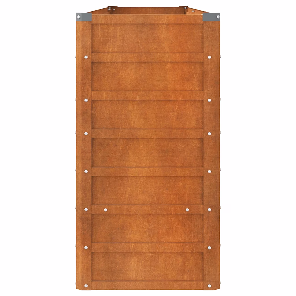 • Vastupidav Corten-teras on ilmastikukindel ja korrosioonivastane, mille pinnale tekib aja jooksul kaitsev roostekiht, mistõttu taimekasti ei ole vaja värvida ega eriliselt hooldada.