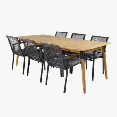 Uhke Dallas must nurgadiivanikomplekt õue on loodud Venture Home kollektsioonis neile, kes väärtustavad elegantsi ja mugavust oma välikeskkonnas. See modernse põhjamaise ilmega komplekt loob suviselt hubase atmosfääri ning muudab iga terrassi või aia säravaks tõmbekeskuseks.