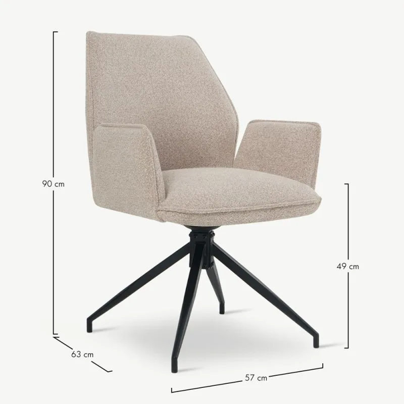 Davi pöörlev söögitool on stiilne ja mugav valik igasse interjööri. Selle ajatu disain ja kvaliteetsed materjalid tagavad nii praktilisuse kui ka esteetilise naudinguga kasutuskogemuse. Modernne bouclé-kangas lisab elegantsi ning muudab tooli visuaalselt pilkupüüdvaks.