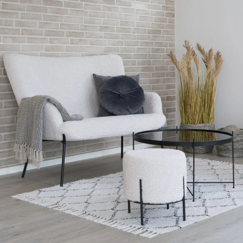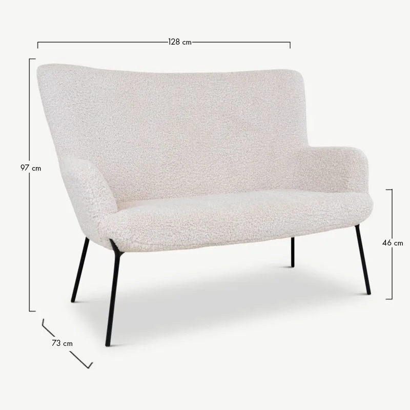 Diivani lai istumissügavus ja pehme bouclé-kangas pakuvad ülimat istumismugavust. Tänu 46 cm istumiskõrgusele ja sügavale istmele saab nautida lõõgastavat ja toetavat istumisasendit. Kahe inimese jaoks mõeldud diivan on piisavalt avar, et pakkuda nii igapäevast kasutusmugavust kui ka ideaalset kohta lõõgastumiseks.