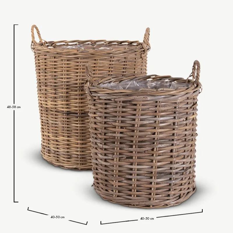 Tänu plastikkattega sisemusele on need ümarad rotangkorvid suurepärased taimede istutamiseks. Aseta neisse erinevaid rohelisi taimi või lilli ja loo kaunis looduslik keskkond oma rõdul, terrassil või aias. Lisaks saab korve kasutada ka siseruumides, et anda elutoale, esikule või magamistoale loomulik ja korralik ilme.