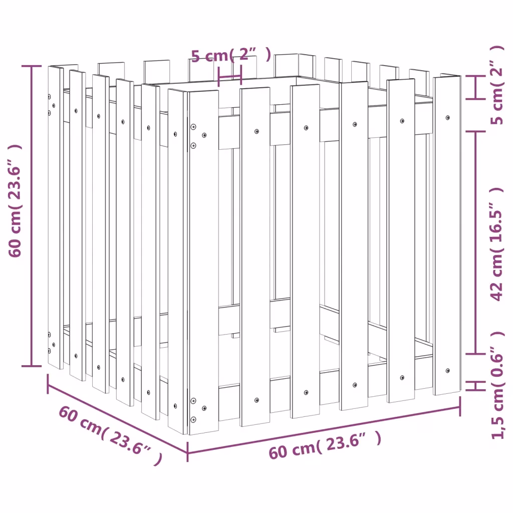 • Ruumikas 60 x 60 x 60 cm mõõt mahutab palju mulda ja jätab taimedele piisavalt kasvuruumi.