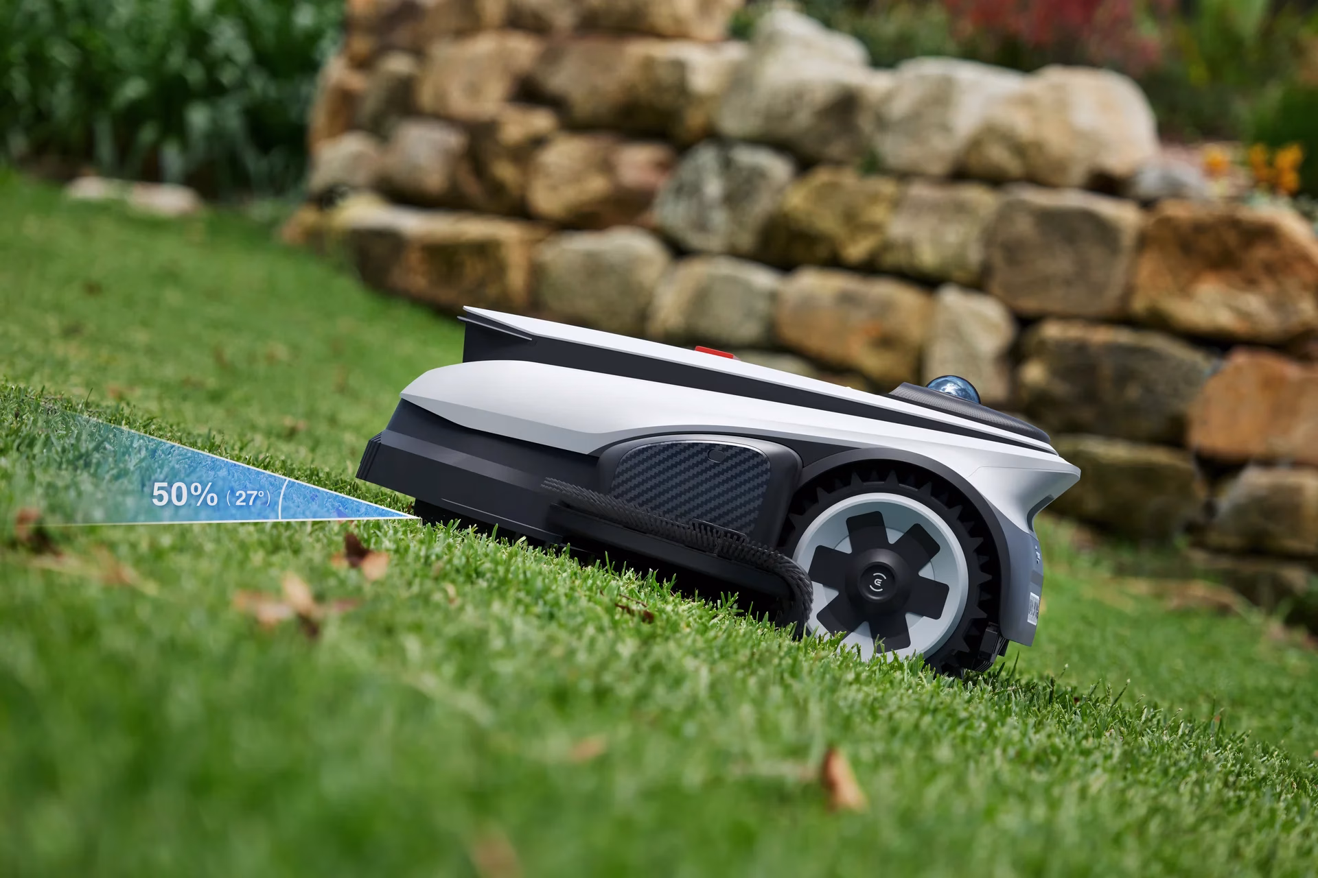 - Kuni 50% (27°) kallaku ületamine – suured turvisega rattad ja madal raskuskese võimaldavad töötada ka järsematel nõlvadel.