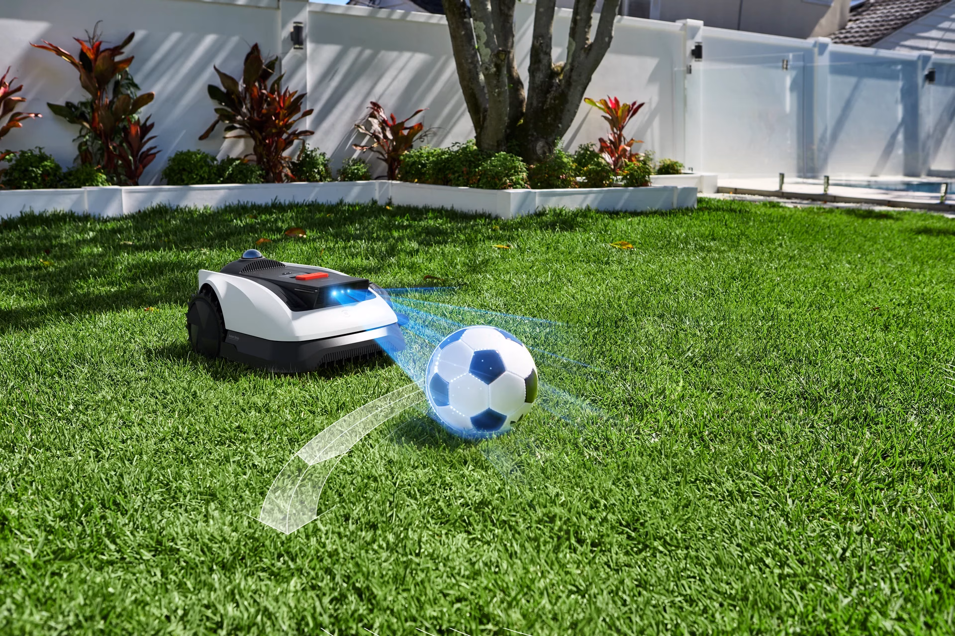 - Takistuste ohutu vältimine – eesmine kaamera ja andurid tuvastavad esemed ning elusolendid, et niiduk suunda muudaks.