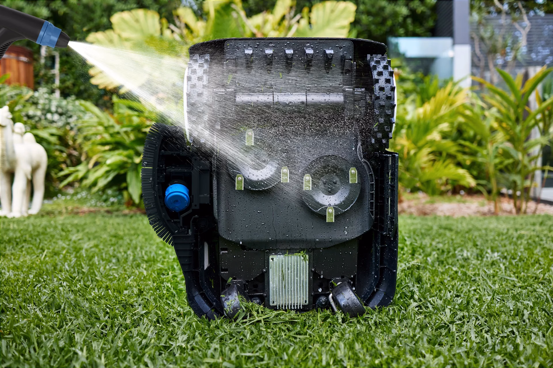 IPX6 veekindlus ja sujuvate pindadega lõikekamber teevad hoolduse lihtsaks. Pärast niitmist piisab põhja ülespööramisest ning rohujääkide maha loputamisest veega. Terasid on soovitatav perioodiliselt kontrollida ja vajadusel välja vahetada, et säiliks puhas lõikejoon.
