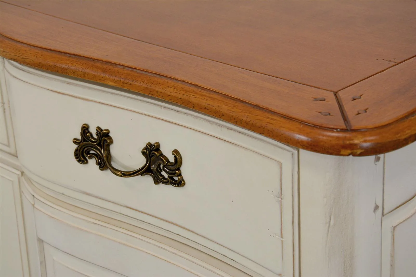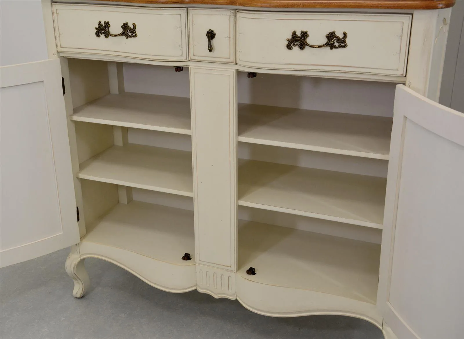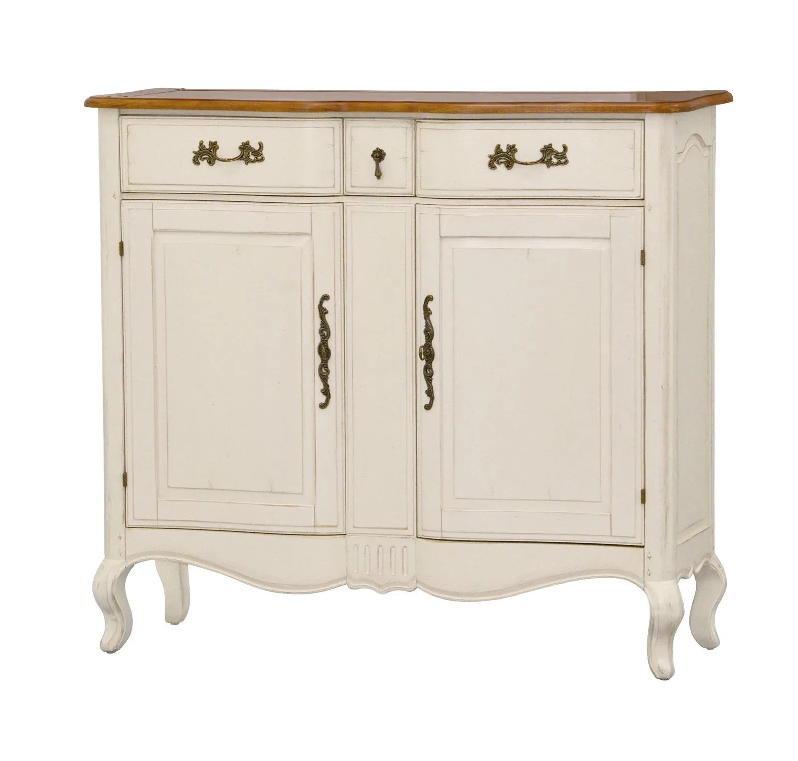 Verona VE873 kapp elutuppa. See elegantne täispuidust kapp, millel on kaunilt painutatud ja freesitud jalad, toob teie elutuppa Provence’i stiili hõngu. Kapi korpus on kaetud elevandiluu tooni poolmati viimistlusega, samas kui pealisplaat särab mee värvi läikega. Kapi korpuse ja pealispinna kaunistavad iseloomulikud kooreüraskimustrid ja dekoratiivsed needid, lisades sellele erilisust ja isikupära.