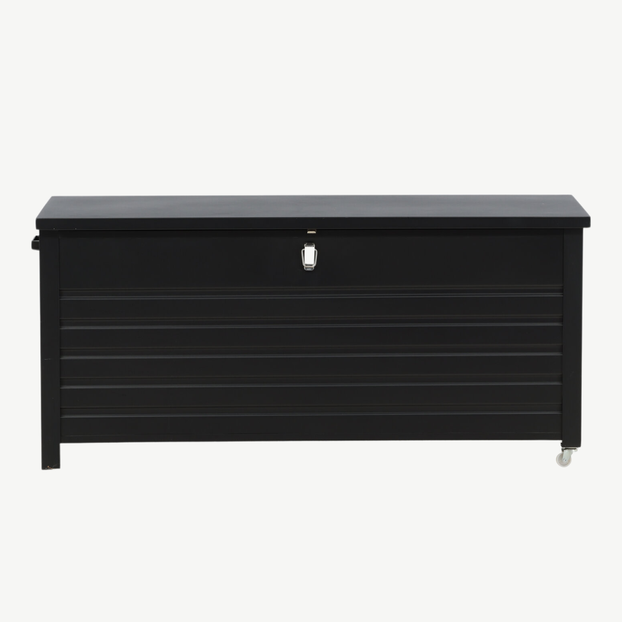 Alumiinium on roostevaba ja ilmastikukindel, kuid soovitame hoiukasti regulaarselt pesta vee ning kerge seebiga, eriti mere lähedal, kus õhus olev sool võib kahjustada pinnakatet. Ära kasuta kõrgsurvepesurit, mis võib pinda rikkuda. Kaitse hoiukasti tolmu ja mustuse eest aiamööbli kattega ja hoiusta talvel kuivades ruumides.