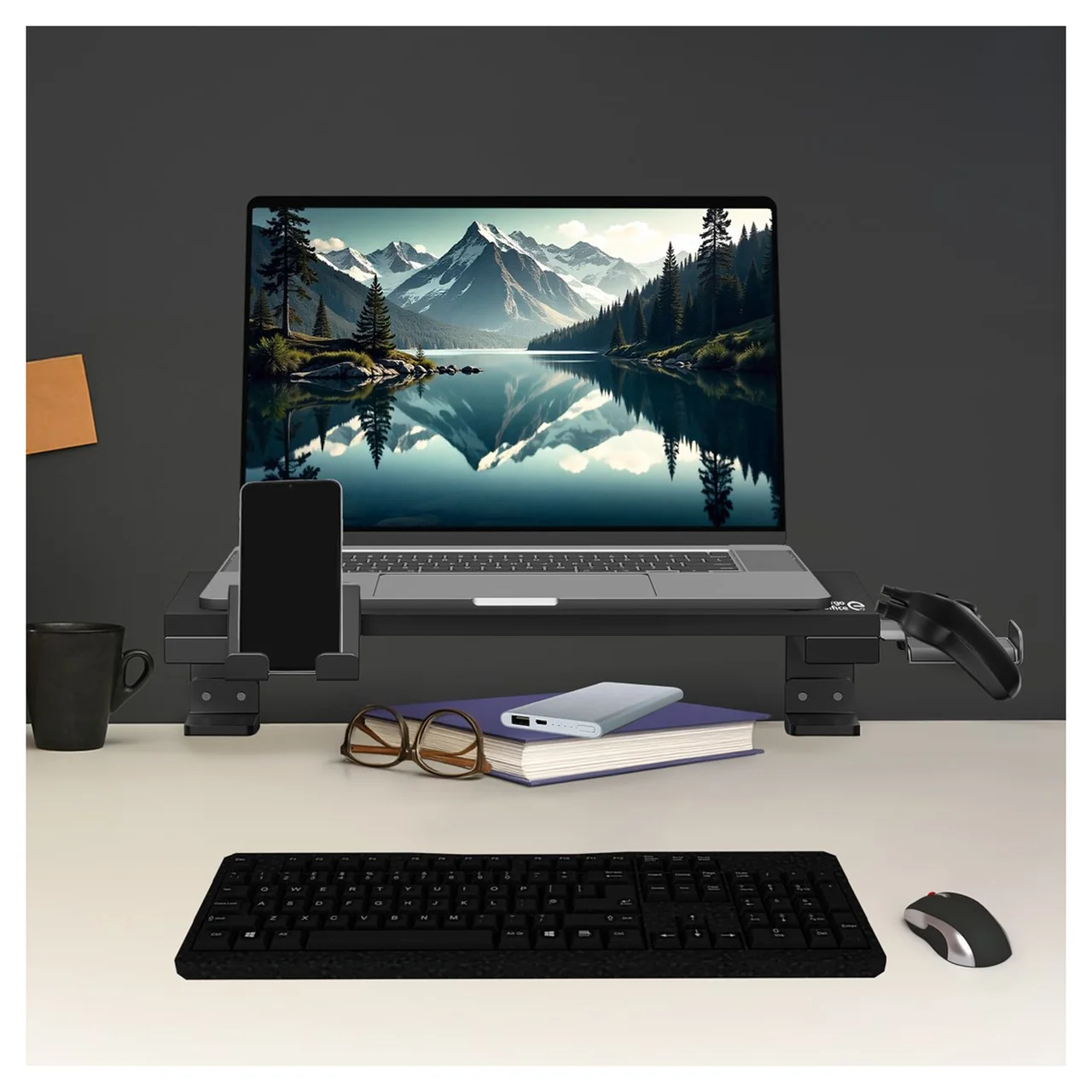 Ergo Office ER-303 B on must lauakinnitusega monitori ja laptopi alus, mis sobib ekraanidele ja arvutitele suurusega 13–32 tolli ning kaaluga kuni 20 kg. See praktiline alus tõstab teie ekraani või sülearvuti ergonoomilisele kõrgusele, luues tööpinnale juurde ruumi ning aidates vältida kaela- ja seljakoormust. Komplektis on mugav eemaldatav telefonialus ning külgkinnitus juhtme või puldi hoidmiseks. Tugev konstruktsioon ja lihtne lauakinnitus tagavad stabiilsuse igapäevases kasutuses.