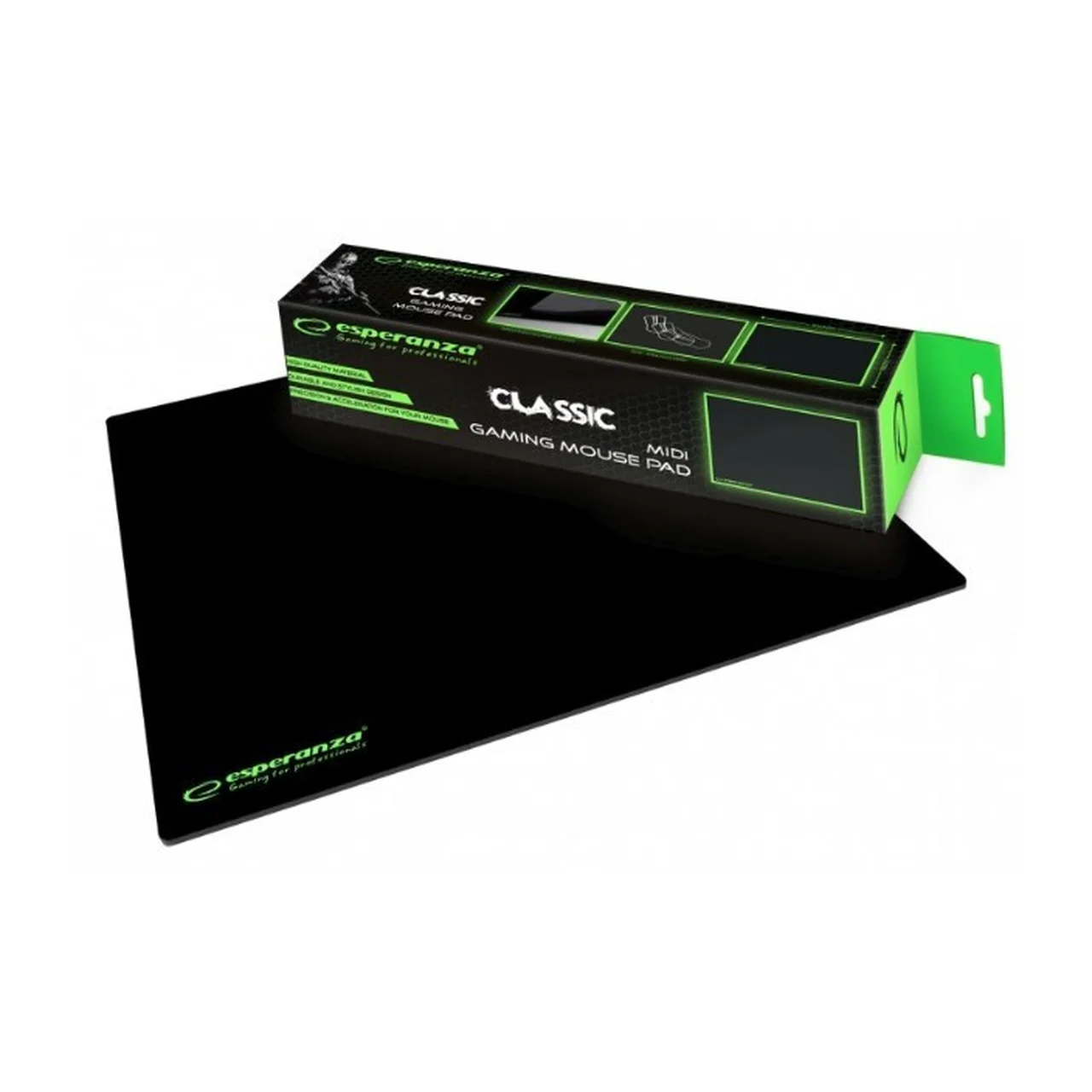Esperanza EGP102K must mänguri hiirematt tagab sujuva hiire liikumise ning kindla haarduvuse tänu libisemisvastasele kummist põhjale. Mõõtmed: 300 x 240 x 3 mm.