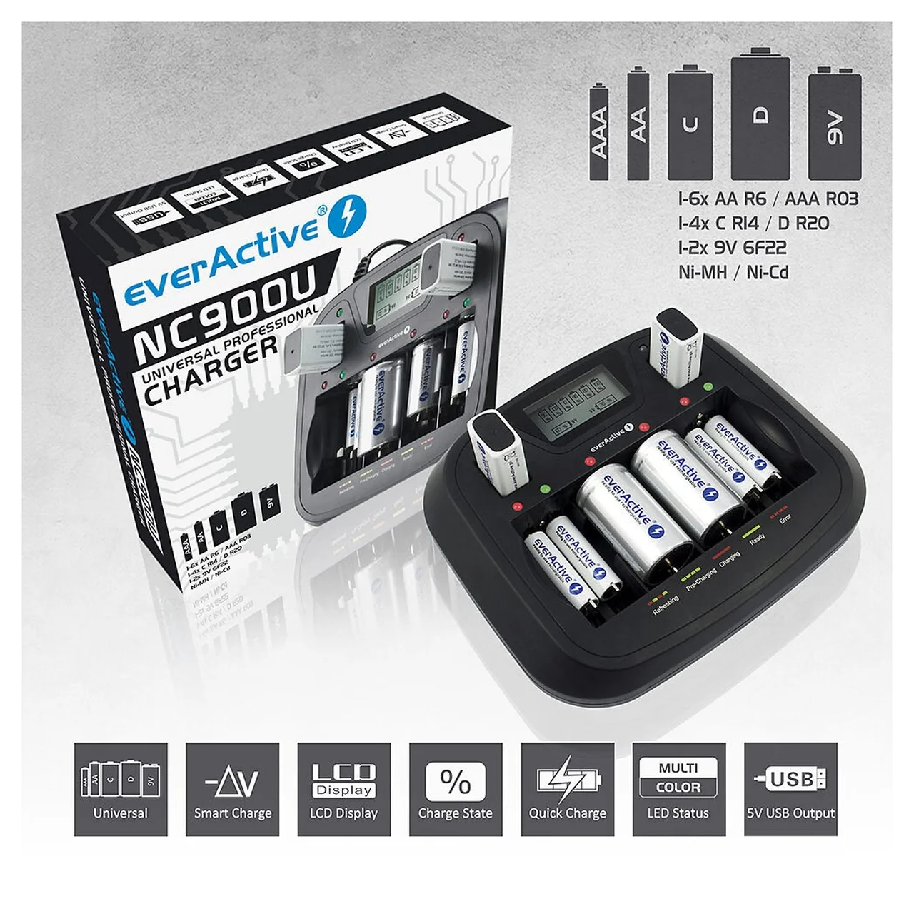 Universaalne akulaadija AA, AAA, C, D everActive NC-900U kodukasutuseks