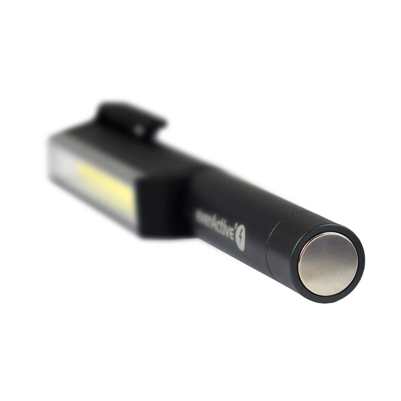 Kompaktne punane alumiiniumist taskulamp everActive WL-200 pakub 200 luumenist COB LED valgust ning töötab kolme AAA patareiga, sobides hästi töökotta ja remondiks.
