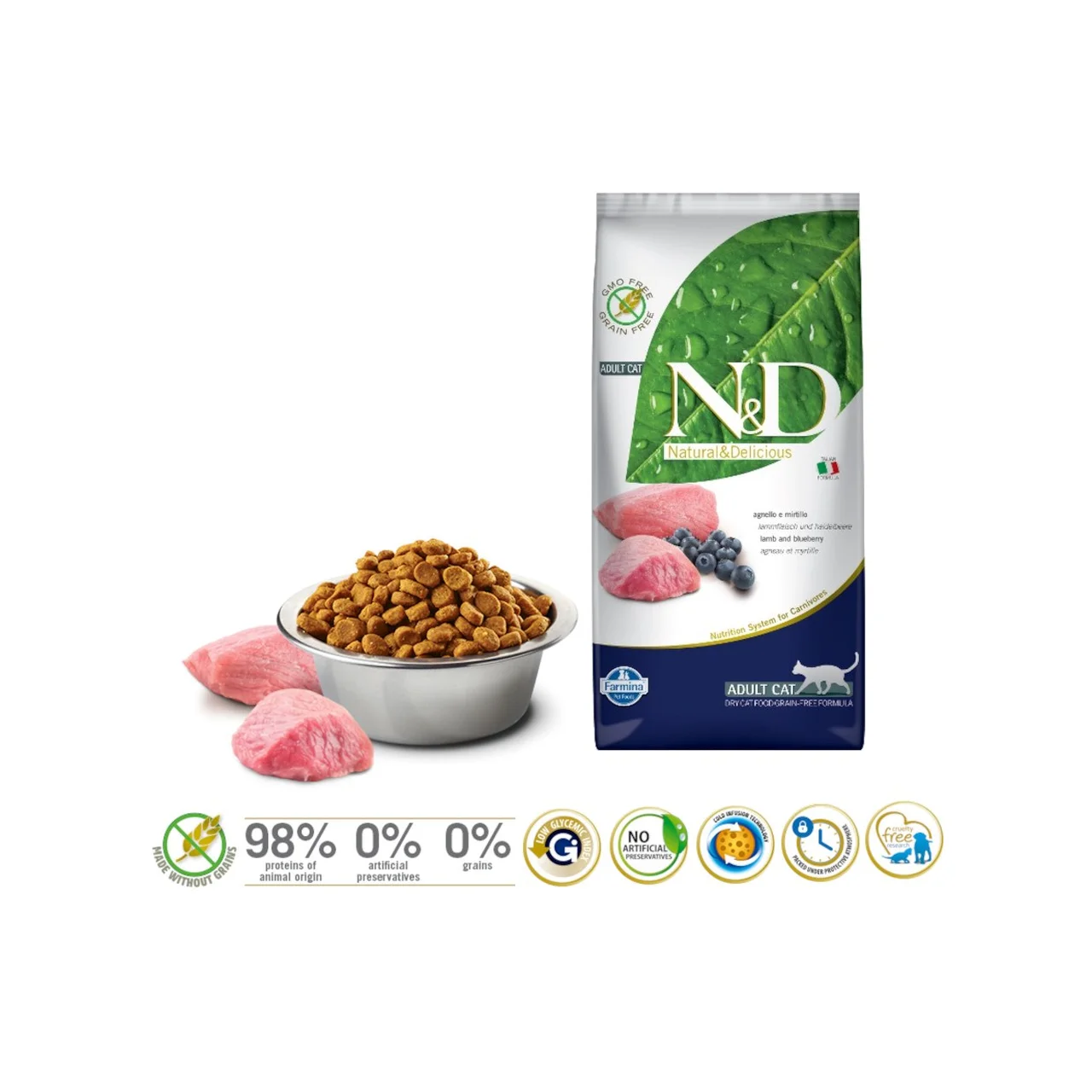 Farmina N&D Prime lambaliha ja mustikaga gluteenivaba kuivtoit täiskasvanud kassile 5 kg
