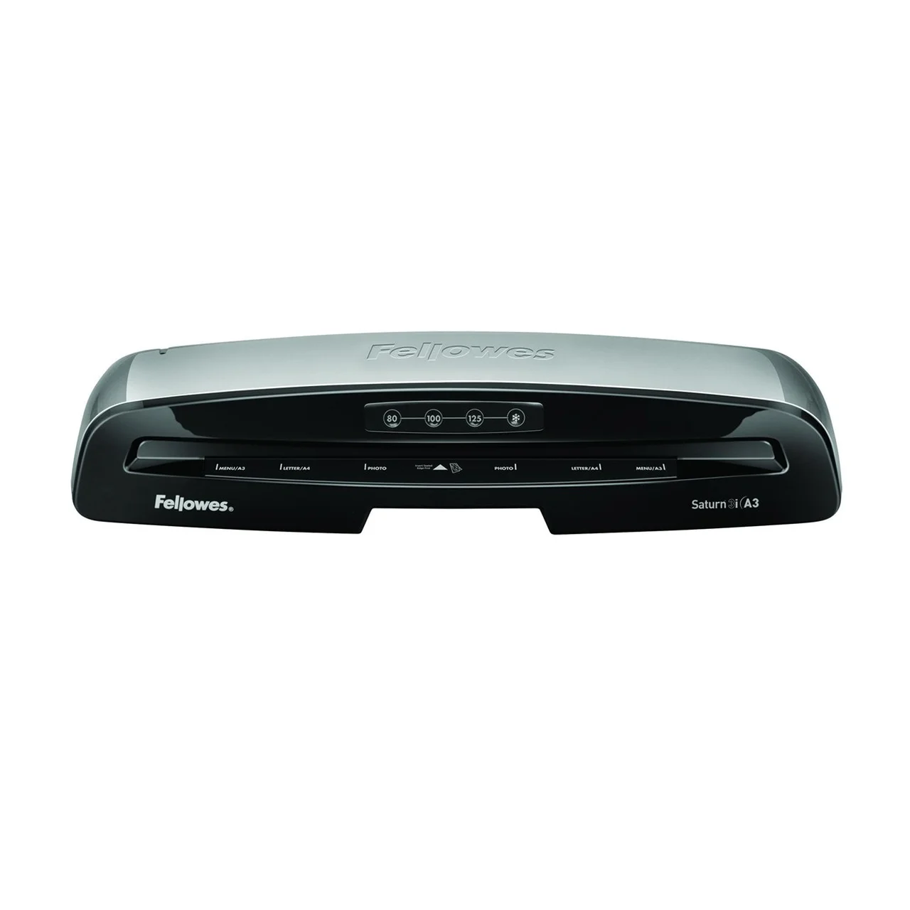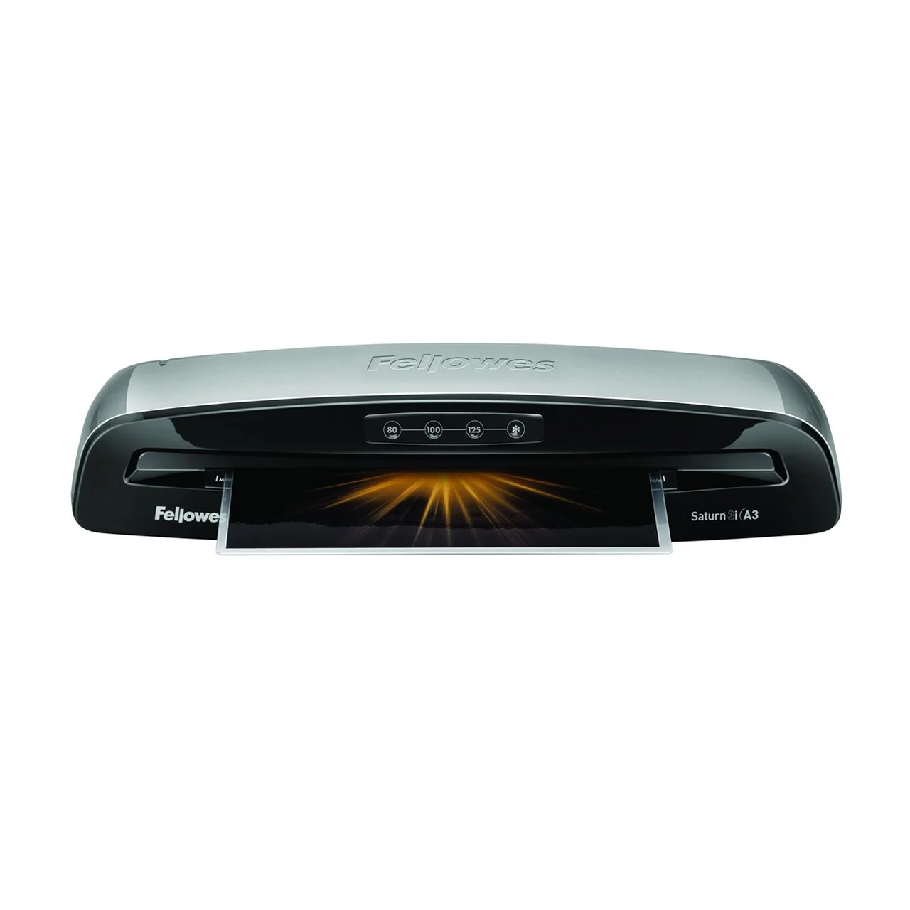 Fellowes Saturn 3i A3 külm- ja kuumlaminaator võimaldab dokumente kiiresti ja lihtsalt lamineerida kuni 32 cm laiuses, musta ja hõbedase viimistlusega.