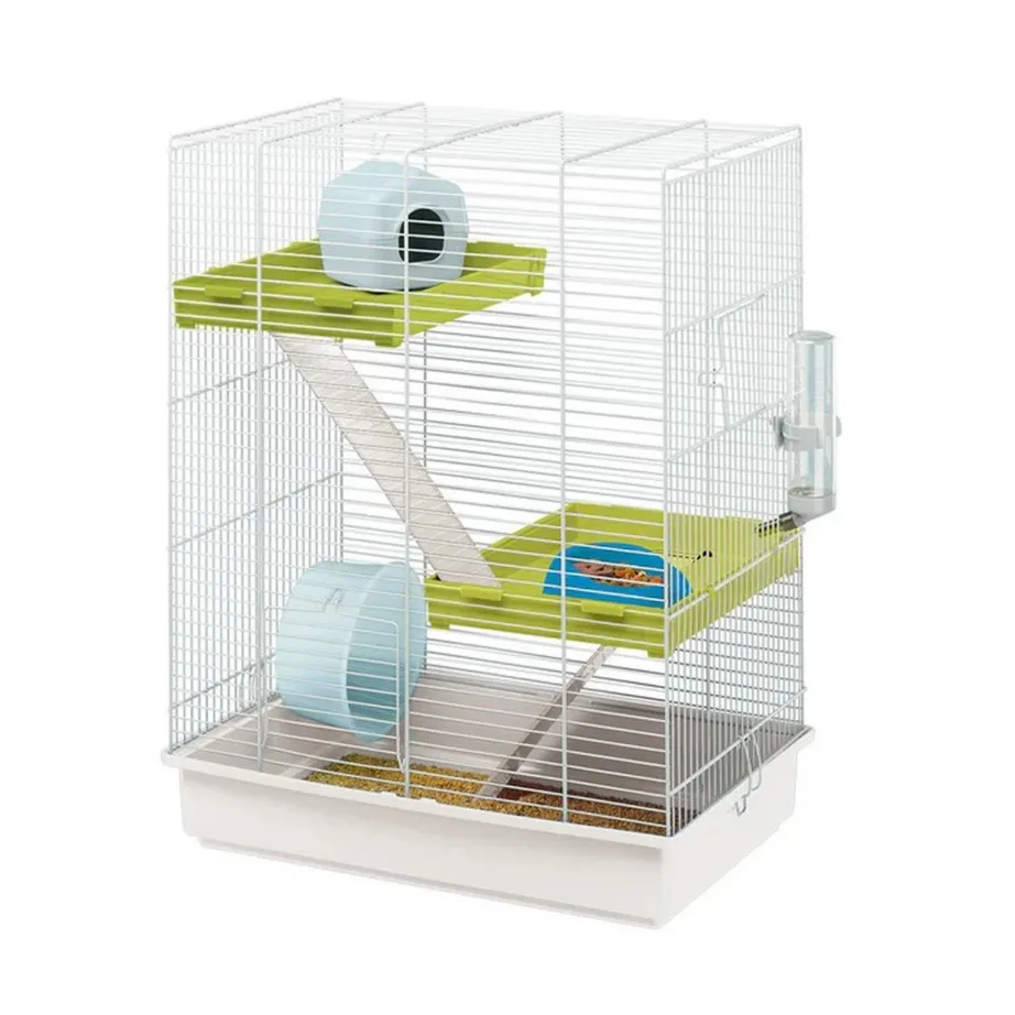 Ferplast Hamster Tris on ruumisäästliku vertikaalse disainiga plastikust ja metallist hamsteripuuri lahendus, mis sobib ideaalselt väikeloomaomanikule, kes soovib pakkuda oma lemmikule nii piisavalt ruumi liikumiseks kui ka mitmekülgseid tegevusvõimalusi. Kahe tasandiga puur on loodud spetsiaalselt hamstritele ja teistele väiksematele närilistele ning on praktiline valik igapäevaseks kasutamiseks koduses keskkonnas, isegi kui ruum on piiratud.