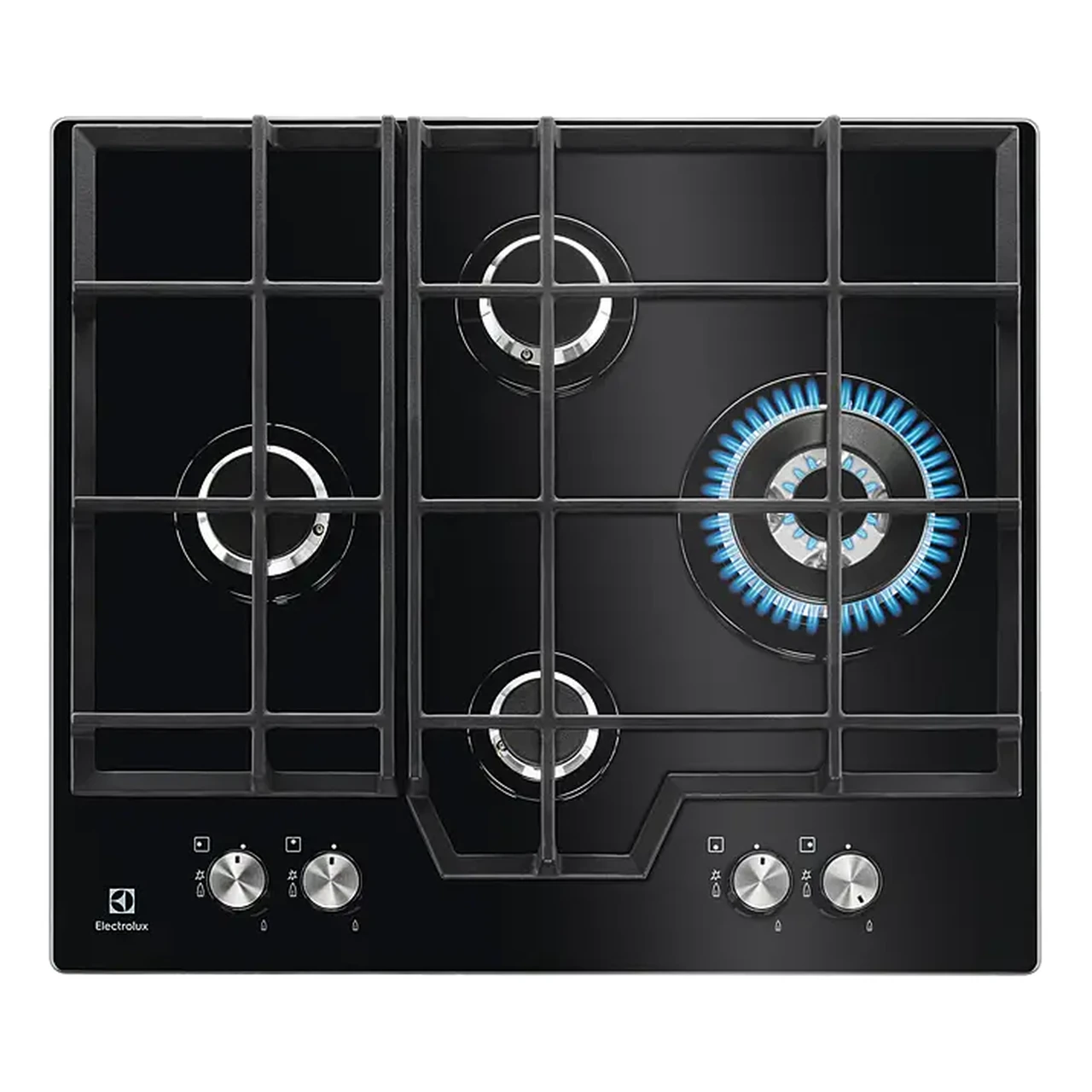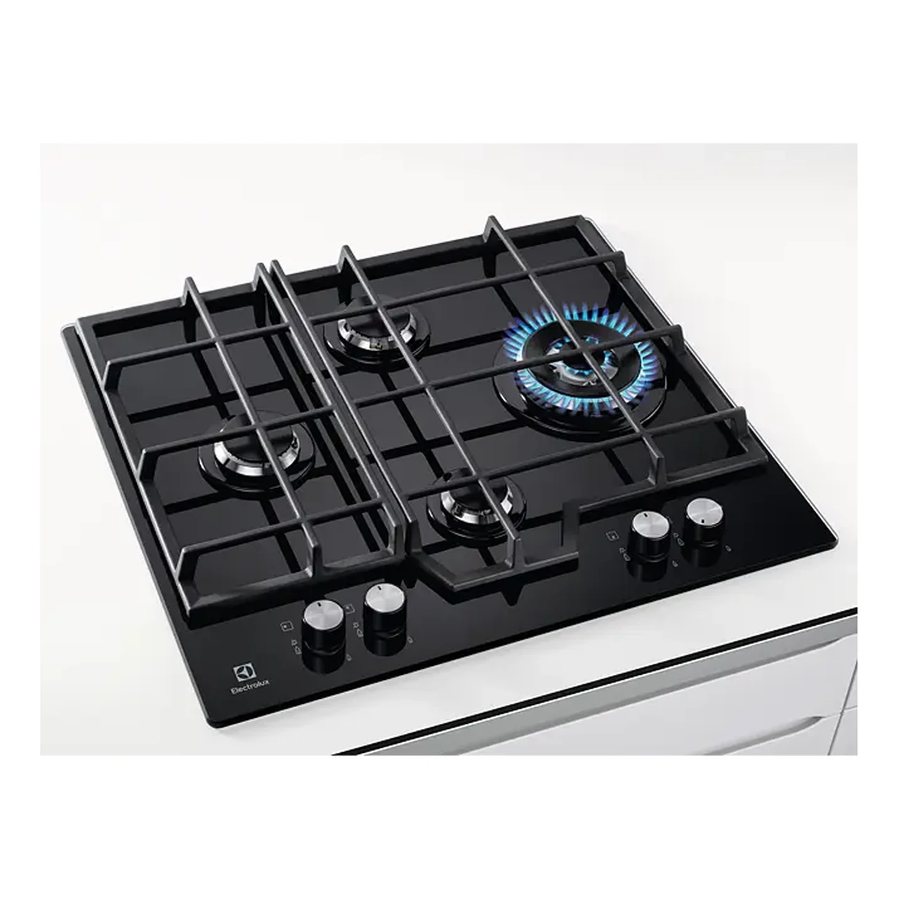 Gaasipliidiplaat karastatud klaaspinnaga ELECTROLUX KGG6456K, 60 cm, 4 põletit, WOK-põleti, malmist pannitoed, must, elektrisüüde, 8900 W