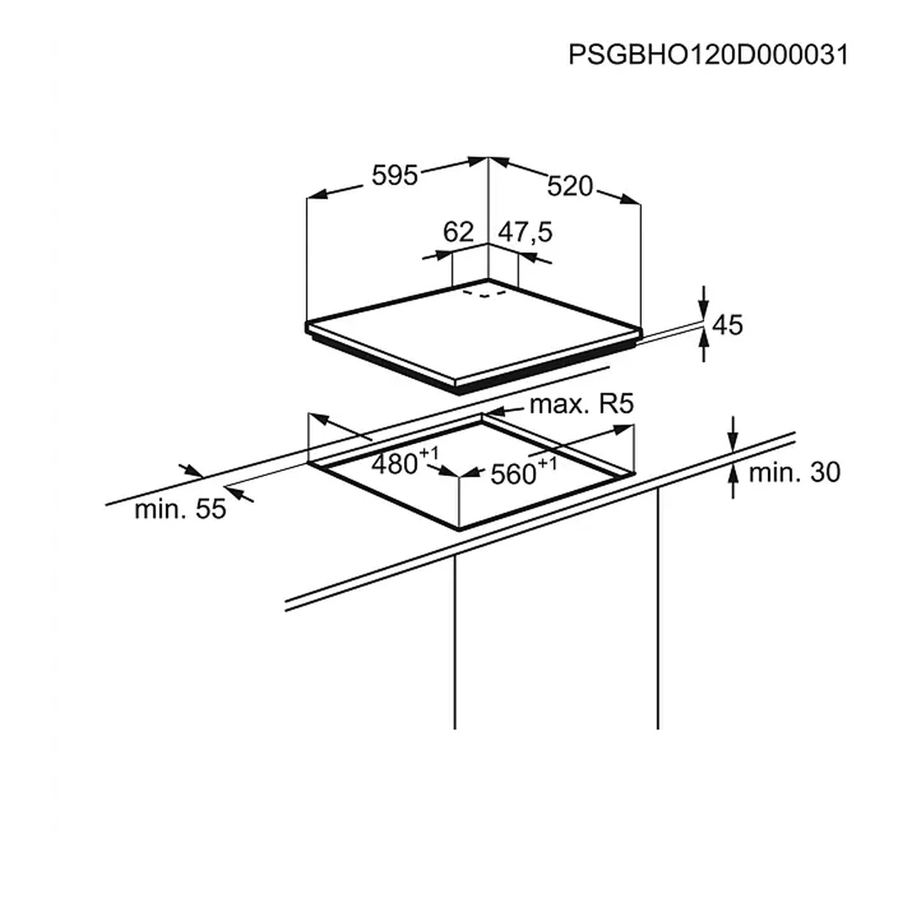 - ELECTROLUX KGG6456K gaasipliidiplaat integreerimiseks tööpinda