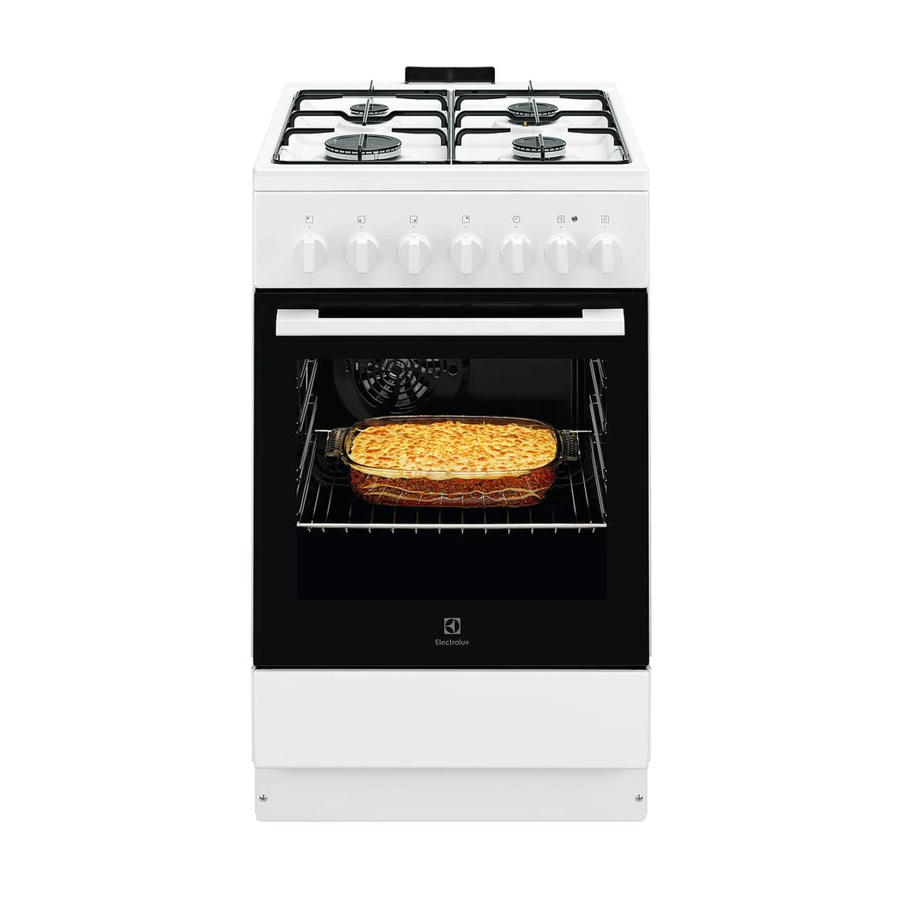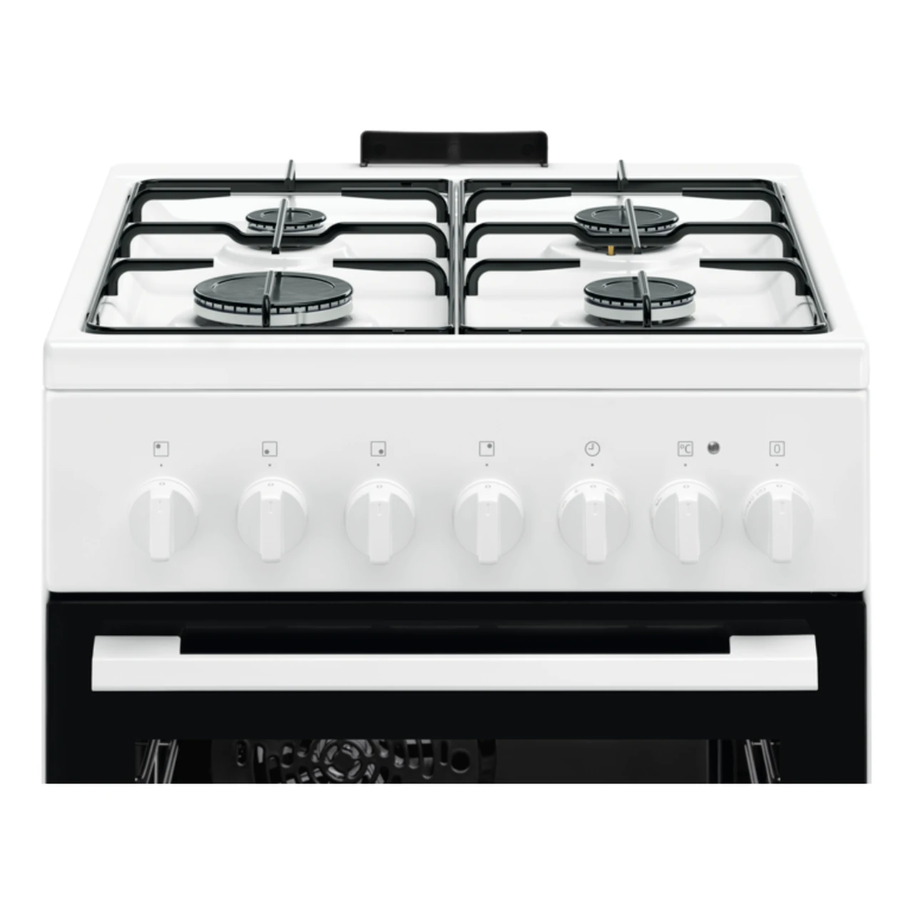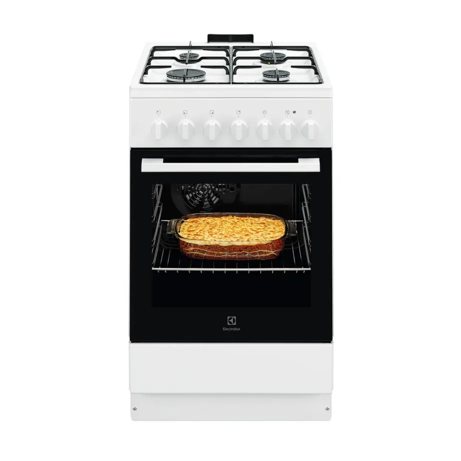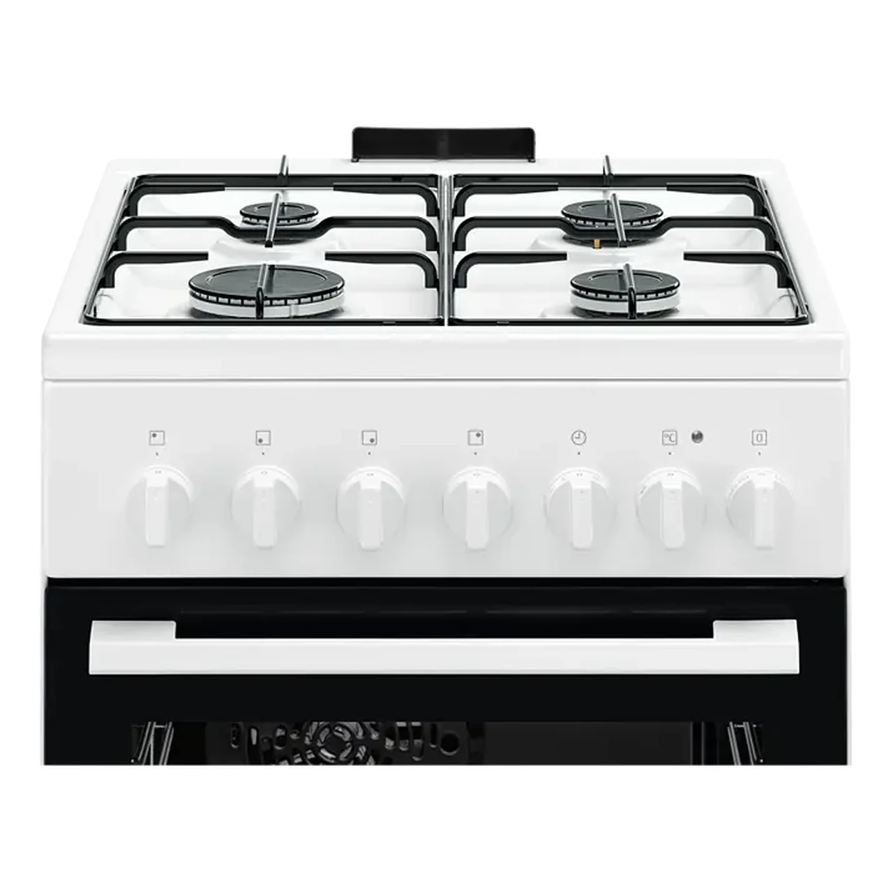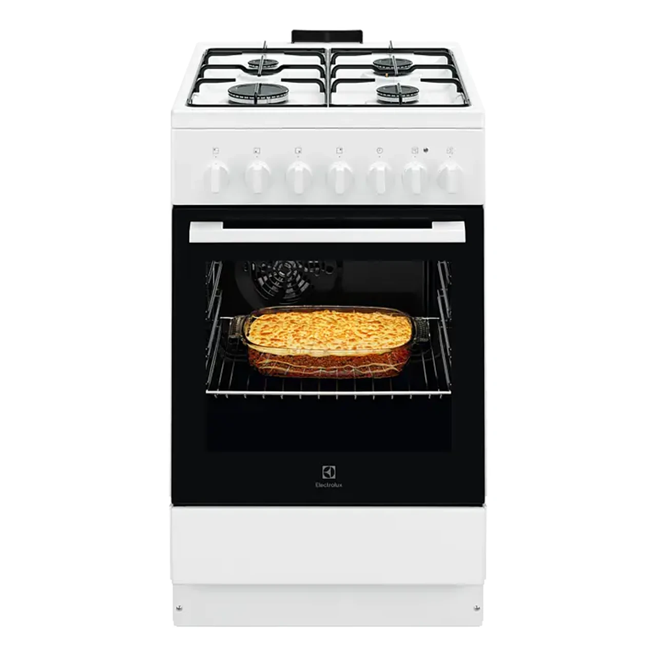 Gaasipliit elektriahjuga 50 cm ELECTROLUX LKK520032W, 4 gaasipõletit, 57 L A-klassi ahi, pöördõhk, nõudesahtel, valge