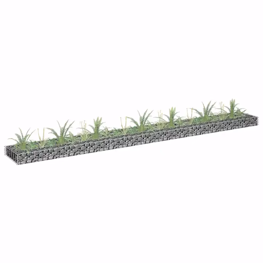 See pikk gabioon-taimelava pikkusega 270 cm aitab selgelt piiritleda lille- ja taimepeenrad. Vastupidavast tsingitud terasest konstruktsioon on mõeldud täitmiseks kivide või kruusaga, luues stabiilse ja ilmastikukindla serva sinu aeda või siseõuele.
