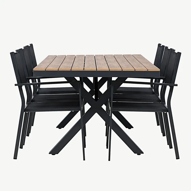 Too põhjamaiselt selge ja kaasaegne ilme oma terrassile või aeda Garcia õuesöögikomplektiga. See sisaldab mahukat ristkülikukujulist Garcia lauda (200 x 100 cm) ning kuut musta Copacabana tooli, luues ideaalse keskkonna nii pere kui sõpradega värskes õhus einestamiseks ja koosviibimisteks.