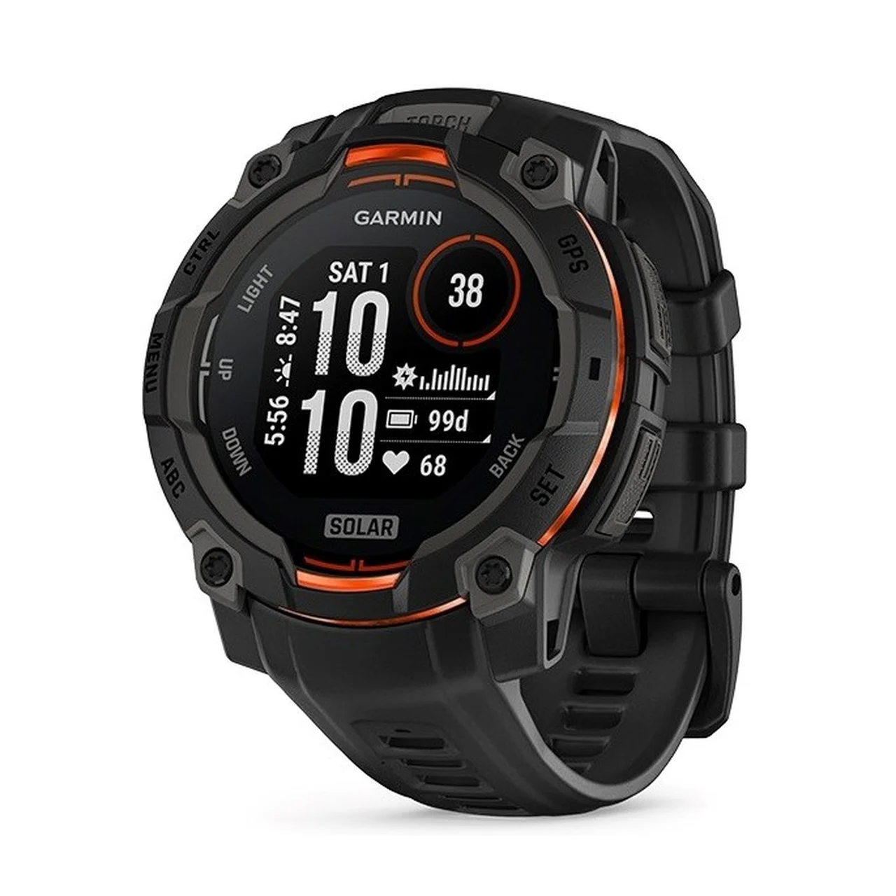 Garmin Instinct 3 Solar on vastupidav musta silikoonrihmaga nutikell, mis pakub päikeselaadimist, GPS-funktsiooni ning laia valikut tervise- ja spordifunktsioone.