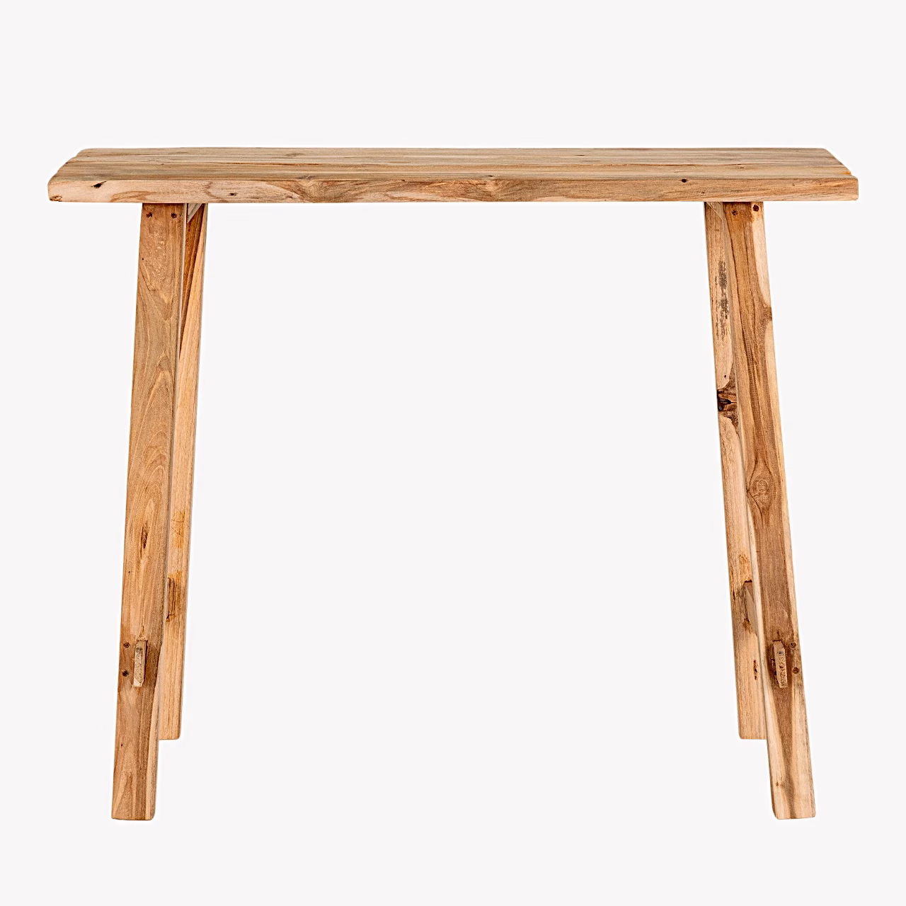 Konsoollaud on valmistatud taaskasutatud tiigipuidust, mis annab mööblile iseloomuliku ilme ja kordumatu mustri. Naturaalne viimistlus tähendab, et puidu toon ja pind võivad ühest lauast teise varieeruda.
