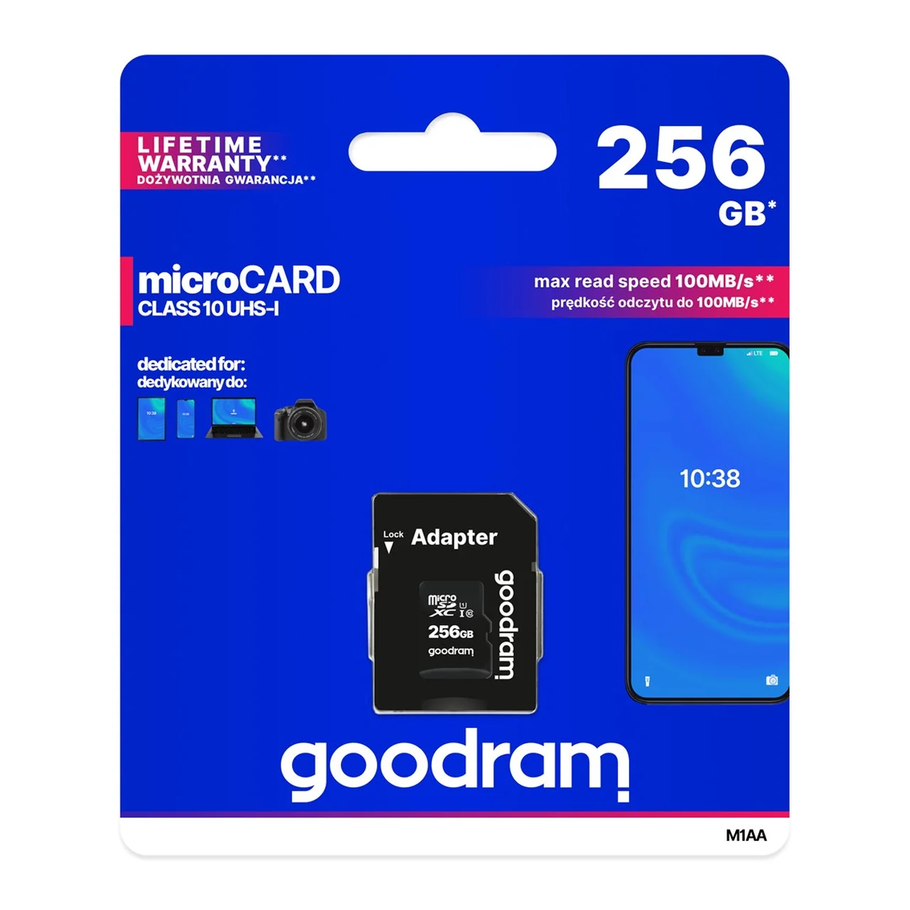 Goodram M1AA-2560R12 256GB MicroSDXC UHS-I Class 10 must mälukaart adapteriga