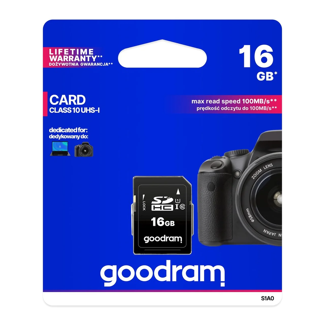 GOODRAM S1A0-0160R12 16GB Class 10 UHS-I SDHC must mälukaart – usaldusväärne valik fotodele ja failidele