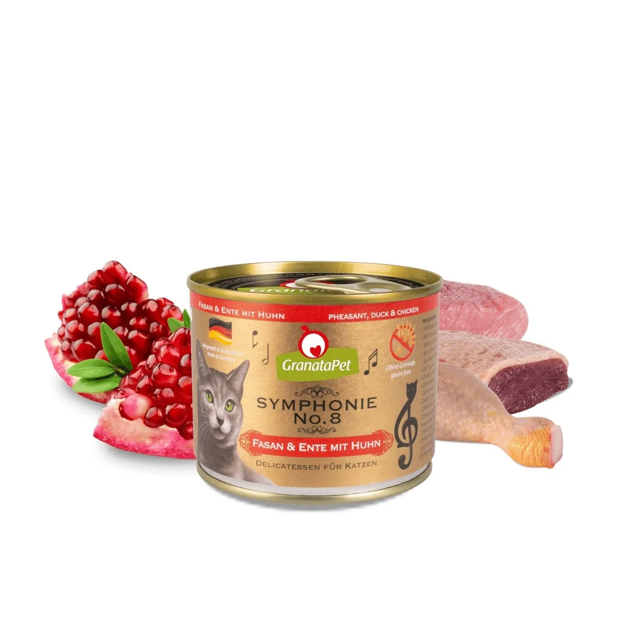 GranataPet Symphonie No.8 200g faasaniga, pardiga ja kanaga täissööt täiskasvanud kassile, teraviljavaba konserv