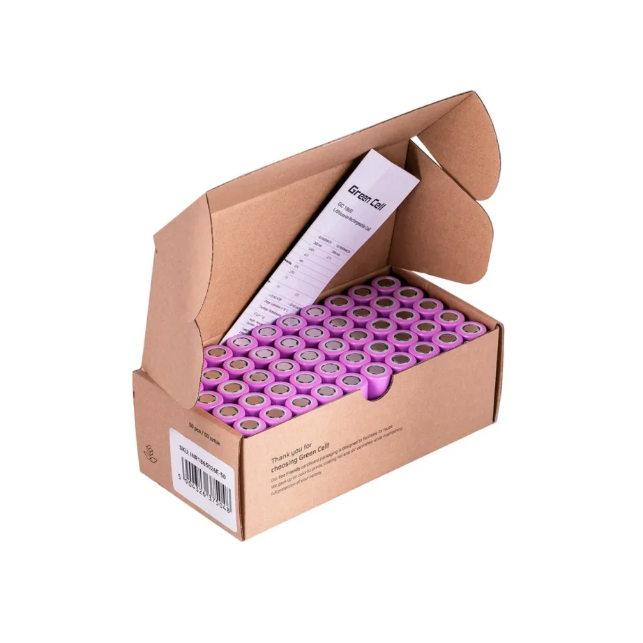 Green Cell 50GC18650NMC26 50×18650 3,6 V 2600 mAh roosad liitiumioonlaetavad akud kuni 1000 tsüklit karbis