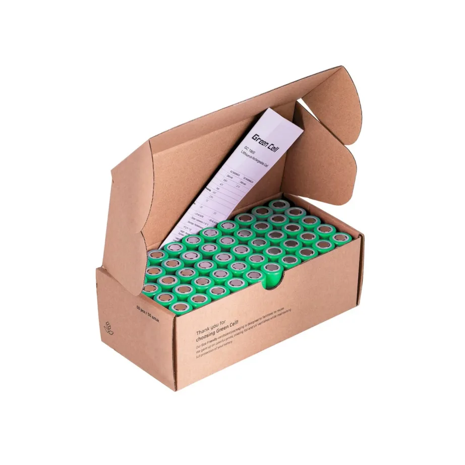 Komplektis on 50 laetavat Green Cell 18650 liitiumioonakut, igaühe mahutavus on 2900 mAh ja pinge 3,7 V. Sobivad erinevatesse elektroonikaseadmetesse.