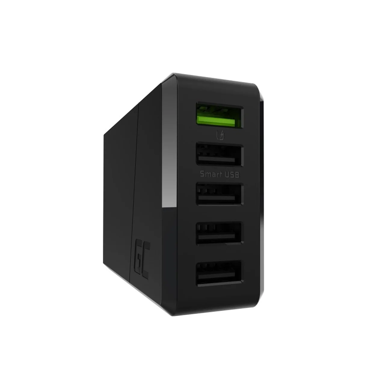 Green Cell CHARGC05 must 52W seinalaadija võimaldab laadida samaaegselt kuni viit USB-seadet, toetades kiirlaadimist ja universaalset ühilduvust.