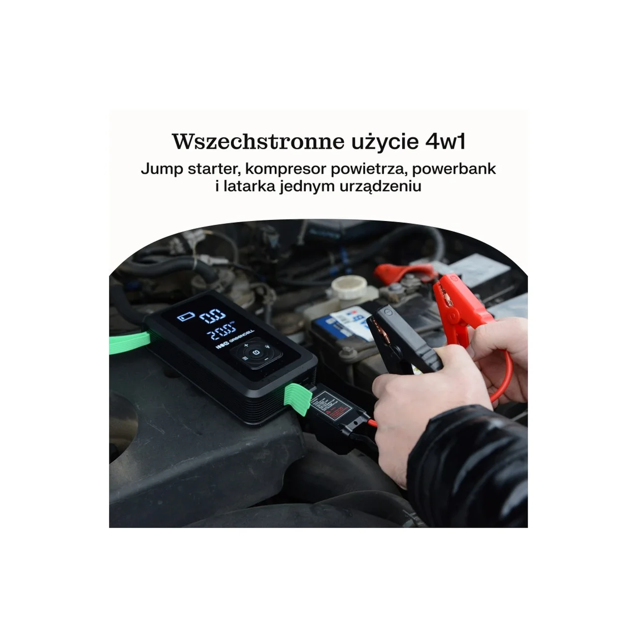 Green Cell CJSGC03 ühendab mitu olulist funktsiooni – autokäivitaja, kompressori, akupanga ja taskulambi – ühes kompaktses ja vastupidavas korpuses, mis teeb sellest kuluefektiivse lahenduse neile, kes hindavad valmisolekut ja töökindlust. Tootega on kaasas kõik vajalikud juhtmed ja adapterid, nii et midagi lisaks osta pole vaja. Mitmekülgsus, turvalisus ja kvaliteet teevad sellest kvaliteetse valiku igale autojuhile või aktiivse eluviisiga inimesele.