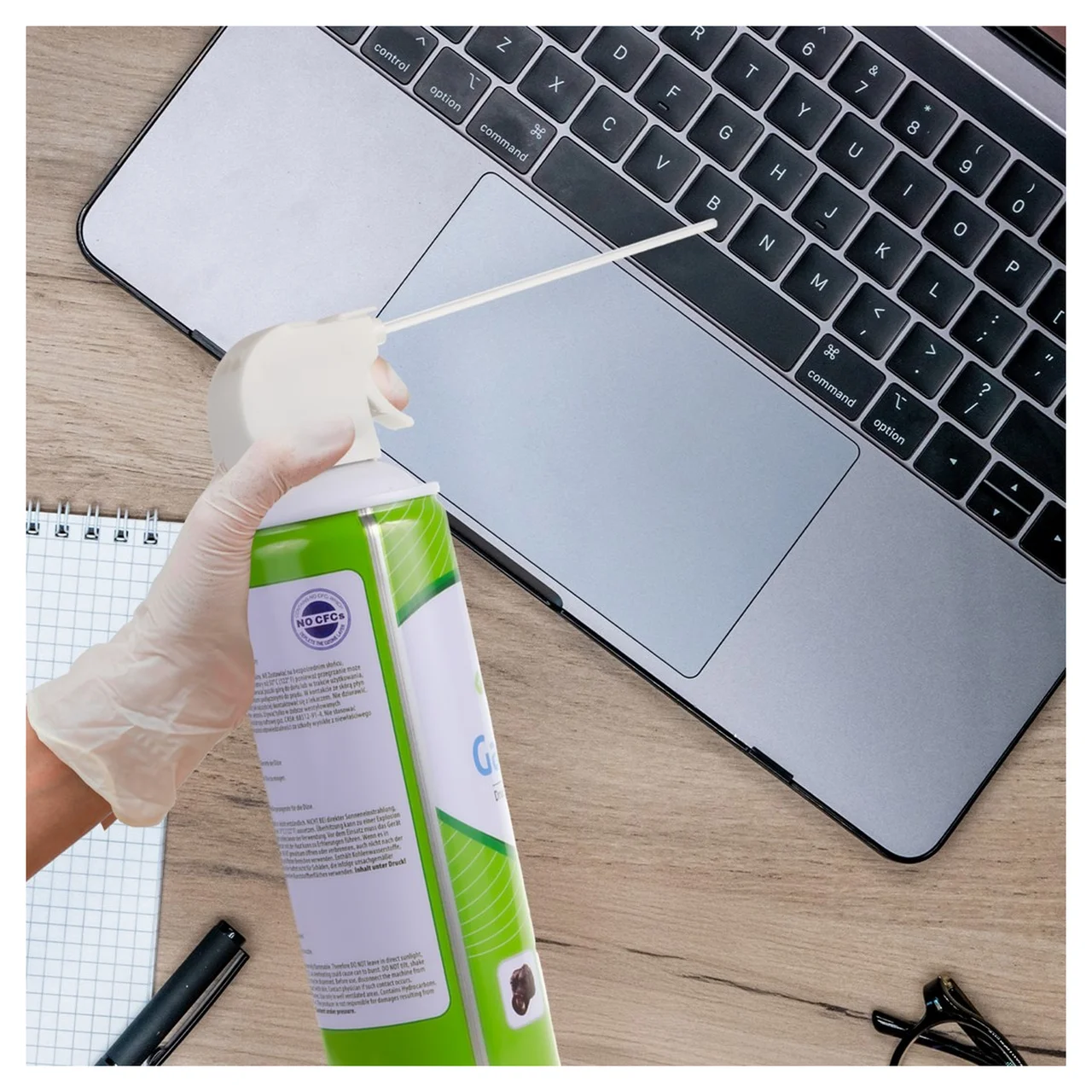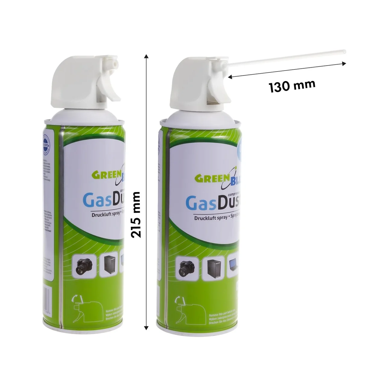 GreenBlue GB400 suruõhupuhasti eristub oma eriti pika, 130 mm pihustitoru ning suure, 400 ml mahutavusega – see tagab pika kasutusaja ja võimaldab tõhusamat puhastust kui standardsed lühema toruga või väiksema mahuga mudelid. Mugav püstolilaadne päästik võimaldab puhastustoimingut täpselt juhtida ka pikaajalise kasutamise korral.