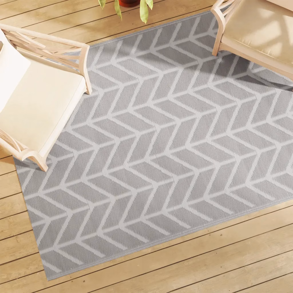 Hall välisvaip ARAKIL loob terrassil, verandale või rõdule hubase ilme ning kaitseb põrandapinda. 140 x 200 cm suurus sobib hästi istumisala alla ning kahepoolne jacquard-muster võimaldab välimust lihtsalt värskendada.