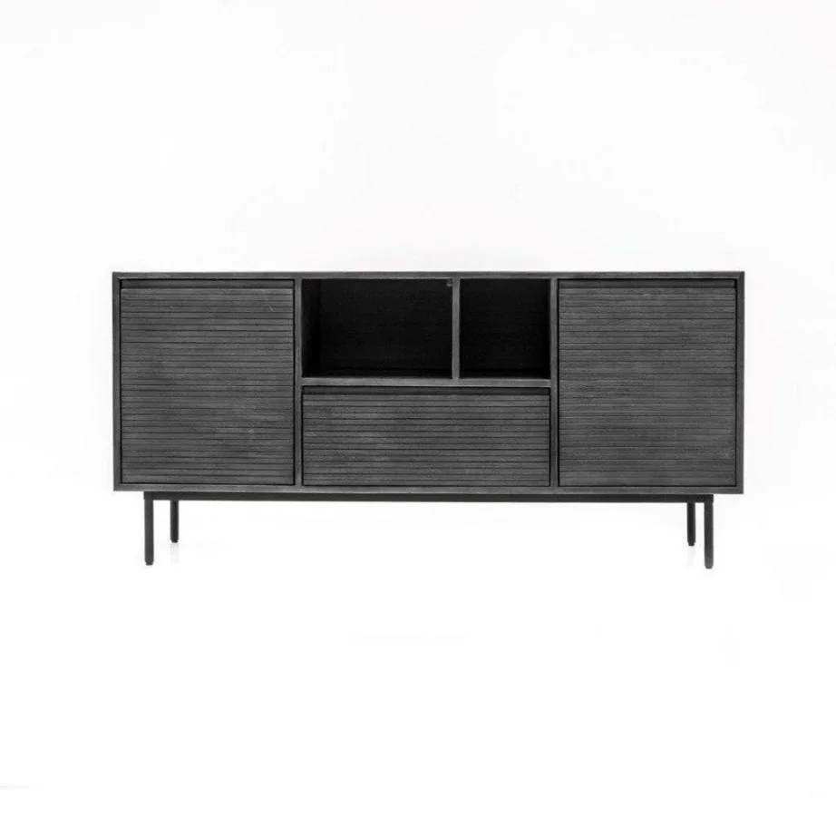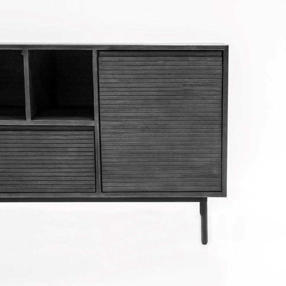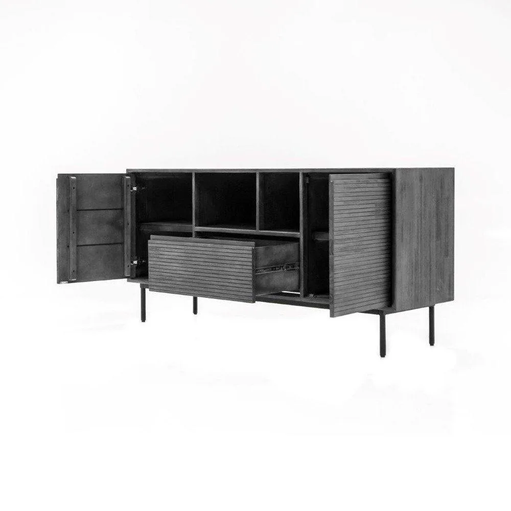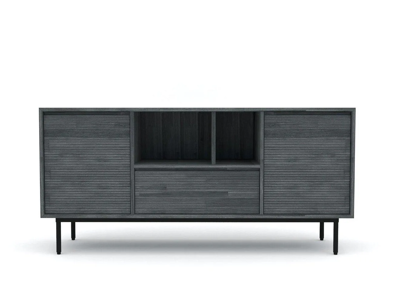 Capella CAPD01-165 kummut elutuppa. See originaalne retrostiilis kummut on valmistatud kvaliteetsest eksootilisest akaatsiapuidust, millele lisavad iseloomu servakäepidemed ja ainulaadne Tundra Hall värvitoon. Kapi esipaneelidel on 3D-struktuur, mida rõhutavad horisontaalsed lamellid. Tumedast grafiidist metallist sirged jalad lisavad tootele modernset elegantsi. Kummutil on kaks ust ja neli riiulit, pakkudes piisavalt hoiuruumi erinevate esemete jaoks.