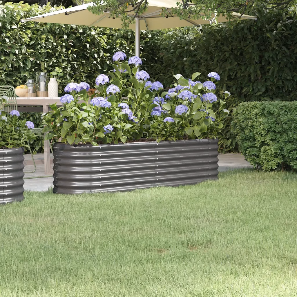 See hall ovaalne aia taimelava galvaniseeritud terasest pakub rohkelt ruumi köögiviljade, ürtide ja lillede kasvatamiseks. Tänu rooste- ja korrosioonivastasele pulberkattele on taimekast ilmastikukindel ning sobib kasutamiseks nii aias, rõdul kui verandil, aidates hoida istutusalad korrastatuna.