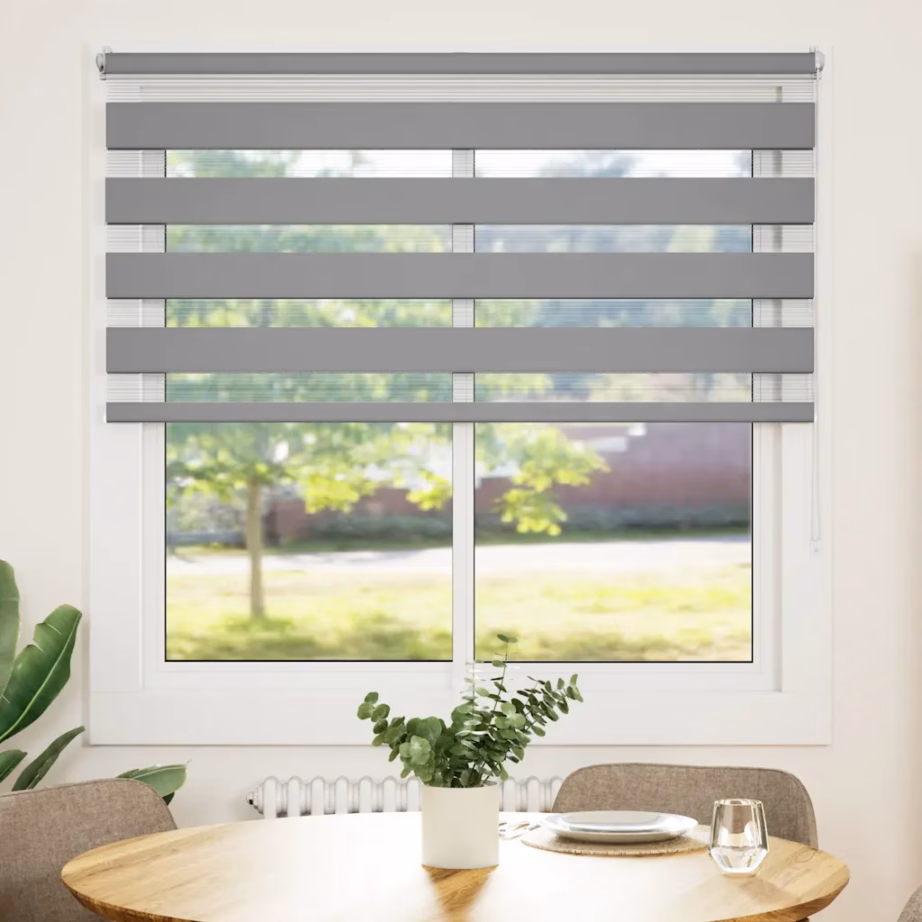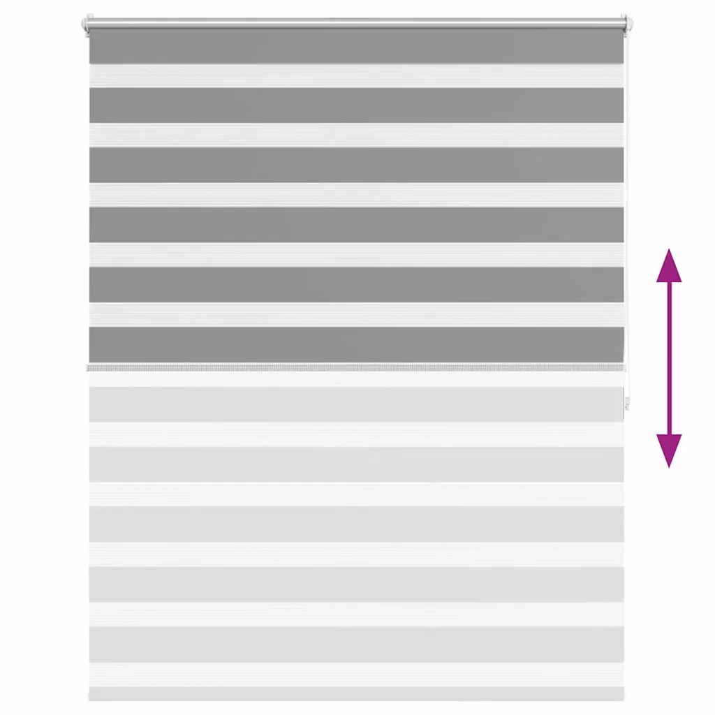 - Kahekihiline sebrakangas vahelduvate läbipaistvate ja läbipaistmatute ribadega võimaldab valida sobiva valguse ja privaatsuse taseme ilma kardinaid täielikult avamata.