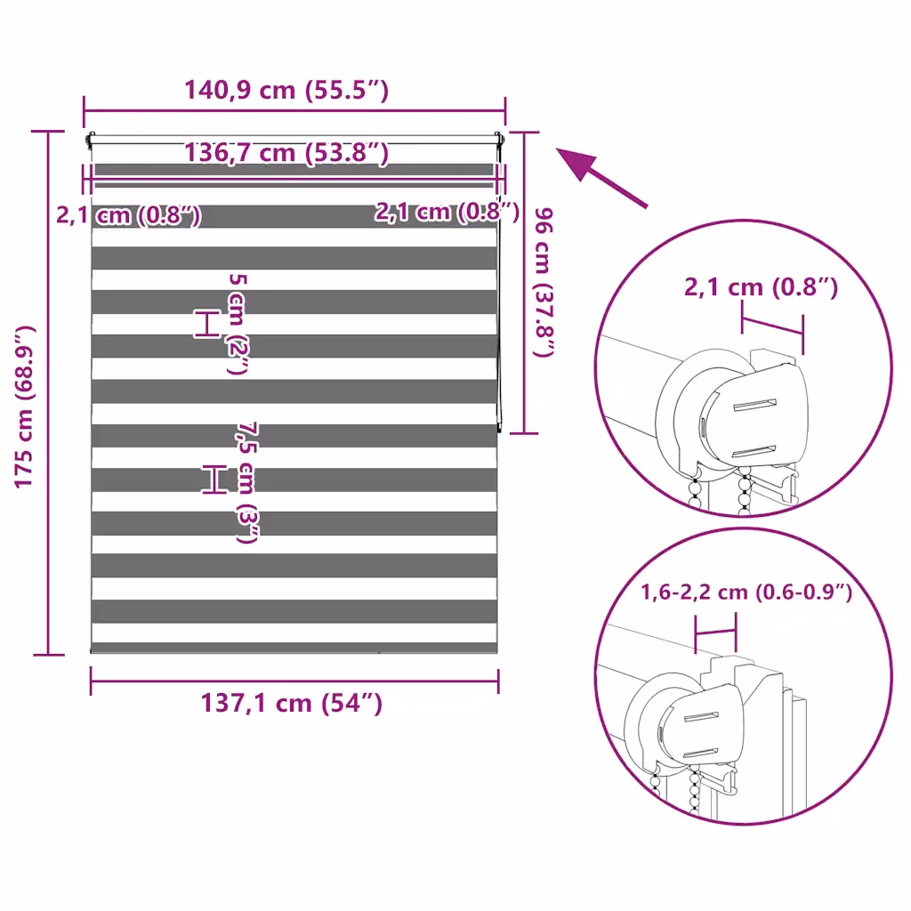 - Mõõdud 140 x 175 cm sobivad paljude standardsete aknaavade ette, kusjuures ülemise toru laius on 140 cm ja kangas ise umbes 3 cm kitsam.