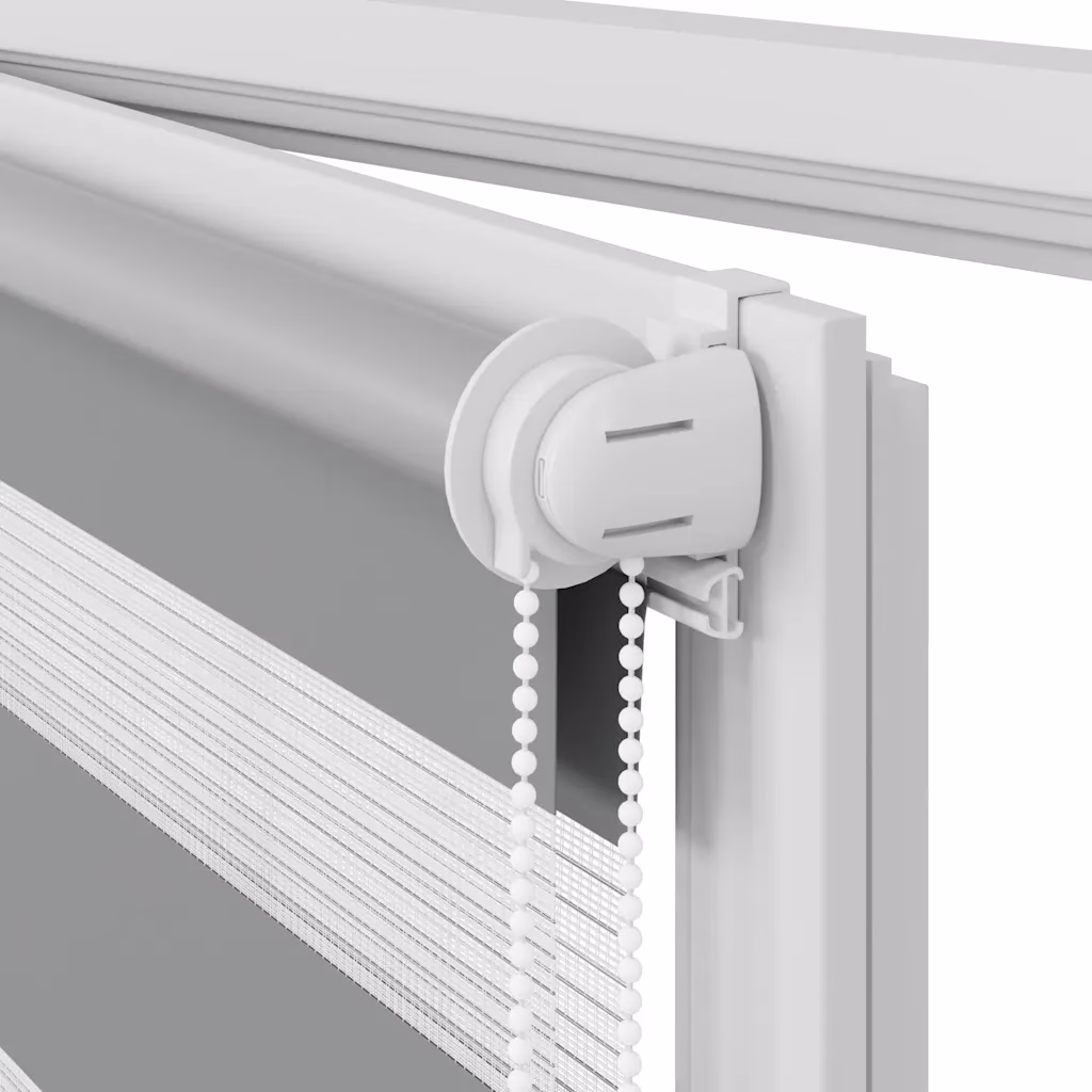 Ruloo ülemise siini laius koos kinnitustarvikutega on umbes 3 cm laiem kui kangas, mis võimaldab selle akna ette paigaldada nii, et kangas katab klaasiosa ühtlaselt. Kasuta kaasasolevaid kronsteine, konksusid ja ketihoidjat, et ruloo kindlalt paigaldada ja tõmbekett fikseerida. Ruloo asendit muutes saad joondada läbipaistvad ja läbipaistmatud ribad kas üksteisega kohakuti või nihkesse, luues vastavalt kas rohkem varju või rohkem läbipaistvust.